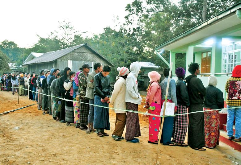 မဲဆန္ဒရှင်ပြည်သူများသည် နံနက် ၆ နာရီ မတိုင်မီကတည်းက ဆန္ဒမဲပေးရန် သက်ဆိုင်ရာမဲရုံများအလိုက် လာရောက်တန်းစီစောင့်ဆိုင်းကြပြီး မဲရုံဖွင့်လှစ်ချိန်တွင် နိုင်ငံသားစိစစ်ရေးကတ်နှင့်အတူ မဲစာရင်းနံပါတ်များတိုက်ဆိုင်စိစစ်၍ လျှို့ဝှက်ဆန္ဒပြုခန်းများ၌ ပြည်သူ့လွှတ်တော်နှင့် အမျိုးသားလွှတ်တော်နေရာတို့အတွက် ဝင်ရောက်ယှဉ်ပြိုင်ကြသည့် လွှတ်တော်ကိုယ်စားလှယ်လောင်းများထဲမှ မိမိတို့နှစ်သက်ရာ ကိုယ်စားလှယ်လောင်းများကို MEVM စက်အသုံးပြု၍ လွတ်လပ်စွာဆန္ဒမဲပေးကြသည်။