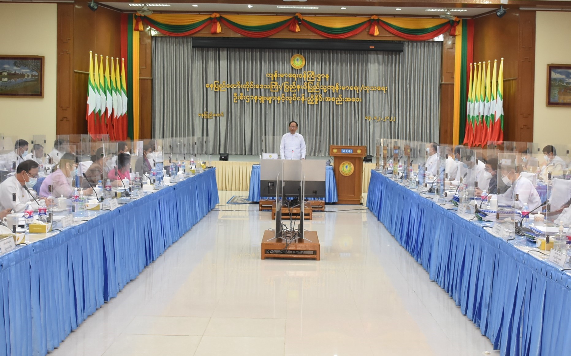 ကျန်းမာရေးဝန်ကြီးဌာန၊ ပြည်ထောင်စုနယ်မြေနေပြည်တော်၊ တိုင်းဒေသကြီး/ပြည်နယ် ပြည်သူ့ ကျန်းမာရေးနှင့် ကုသရေးဆိုင်ရာ ညှိနှိုင်းအစည်းအဝေးကို ယနေ့တွင် ကျန်းမာရေးဝန်ကြီးဌာန ပြည်ထောင်စုဝန်ကြီး ပါမောက္ခဒေါက်တာသက်ခိုင်ဝင်း ဦးဆောင်၍ ကျင်းပသည်။