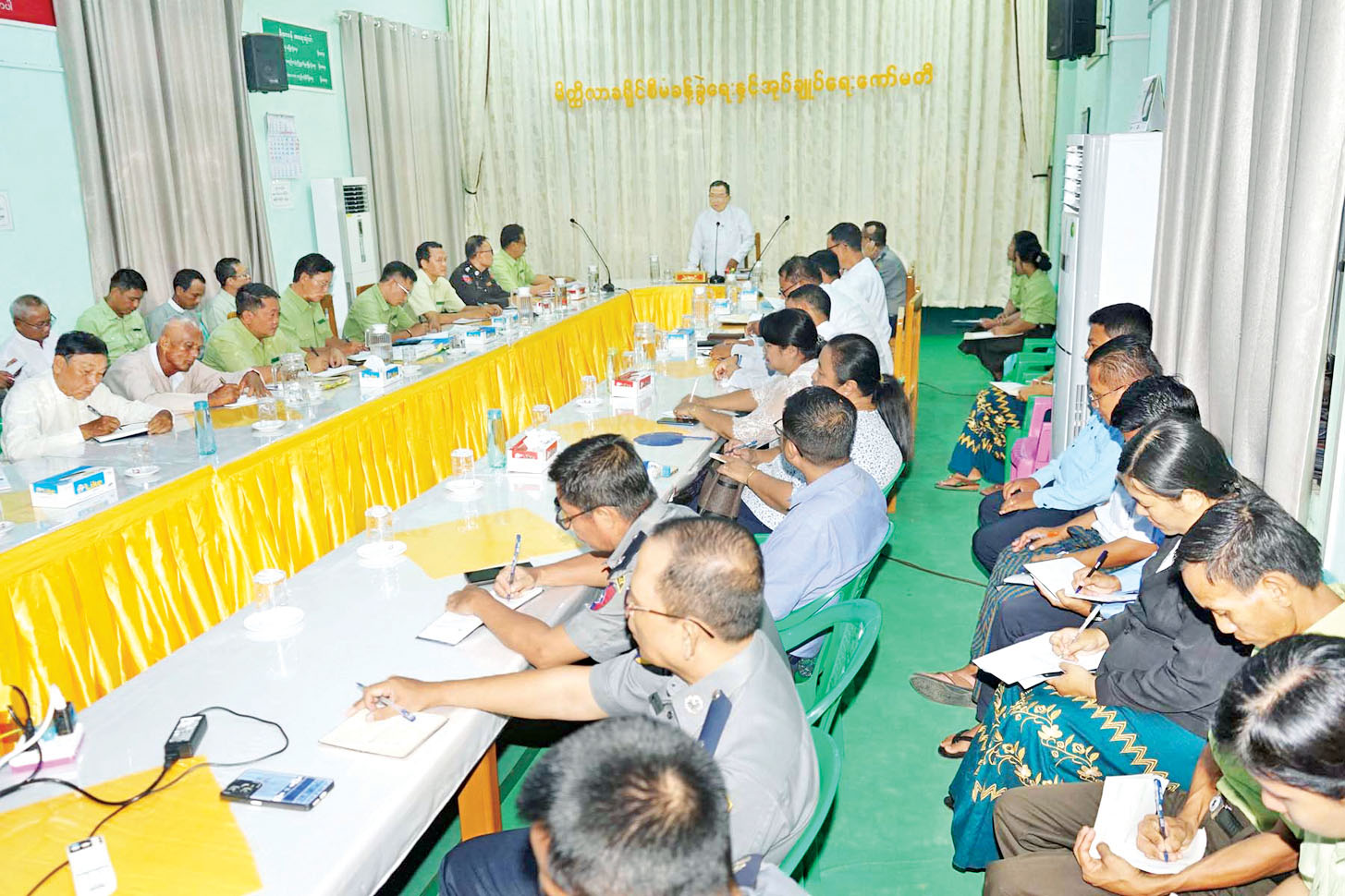တွေ့ဆုံစဉ် ပြည်ထောင်စု ရွေးကောက်ပွဲကော်မရှင် အဖွဲ့ဝင်က ပထမအကြိမ် မဲစာရင်း ကပ်ထား ကြေညာနိုင်ရေးအတွက် ကြိုတင်ပြင်ဆင်ဆောင်ရွက်နေမှု၊ မဲစာရင်းပါရှိသည့် သက်ဆိုင်ရာ မြို့နယ်၏ ပြင်ပတွင် ရောက်ရှိနေသော ဆန္ဒမဲပေးပိုင်ခွင့် ရှိသူများနှင့် ယာယီနေရပ်စွန့်ခွာနေရသူများအား ကော်မရှင်အဖွဲ့ခွဲများ၏ စီစဉ်မှုဖြင့် ကြိုတင်ဆန္ဒမဲပေးနိုင်ရေး‌ ဆောင်ရွက်ပေးရမည့် လုပ်ငန်းစဉ်များ၊ လျာထားမဲရုံ တည်နေရာနှင့် မဲဆန္ဒရှင်စာရင်းများအား သက်ဆိုင်ရာ ရပ်ကွက်၊ ကျေးရွာ၊ မြို့နယ်နှင့် ခရိုင်ကော်မရှင်အဖွဲ့ခွဲများက ပူးပေါင်းစီစဉ်ဆောင်ရွက်သွားရမည့် အခြေအနေ၊ မြန်မာ အီလက်ထရောနစ် မဲပေးစက်  MEVM စက်များအား ထုတ်ယူ၍ တပ်ဆင်စမ်းသပ်ခြင်းနှင့် လျာထား ရက်အတွင်း မဲရုံများသို့ သယ်ယူ ပို့ဆောင်နိုင်ရေးအတွက် ခရိုင်နှင့် မြို့နယ် MEVM ကြီးကြပ်မှုအဖွဲ့နှင့် နည်းပညာအထောက်အကူပြုအဖွဲ့ များက စီမံဆောင်ရွက်ရမည့် လုပ်ငန်းစဉ်များကို ဆွေးနွေး ပြောကြားသည်။