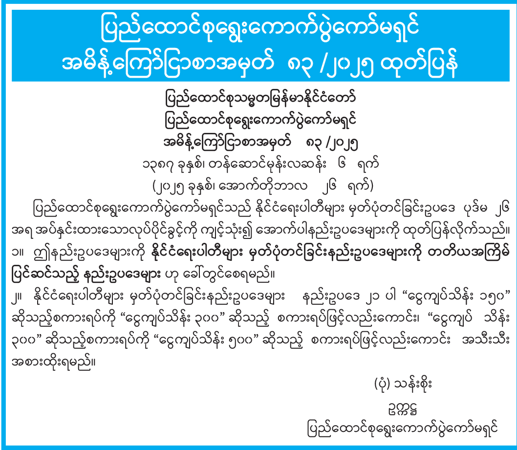 ပြည်ထောင်စုရွေးကောက်ပွဲကော်မရှင် အမိန့်ကြော်ငြာစာအမှတ် ၈၃ / ၂၀၂၅ ထုတ်ပြန်