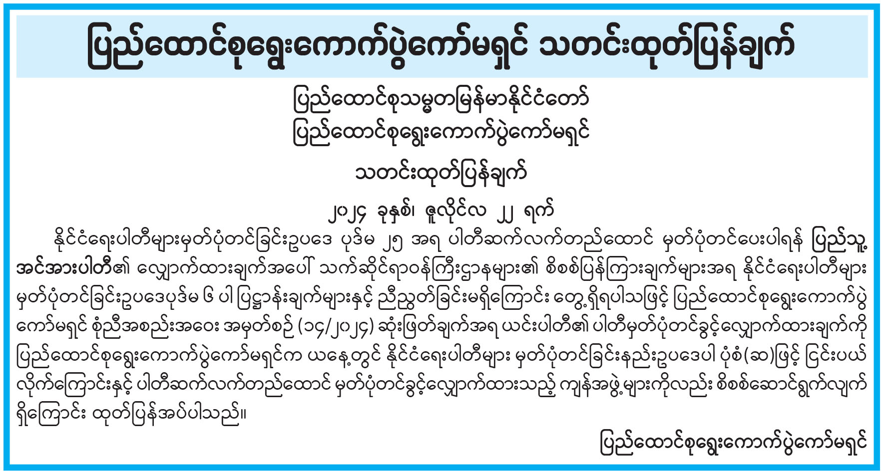 ပြည်ထောင်စုရွေးကောက်ပွဲကော်မရှင် သတင်းထုတ်ပြန်ချက်