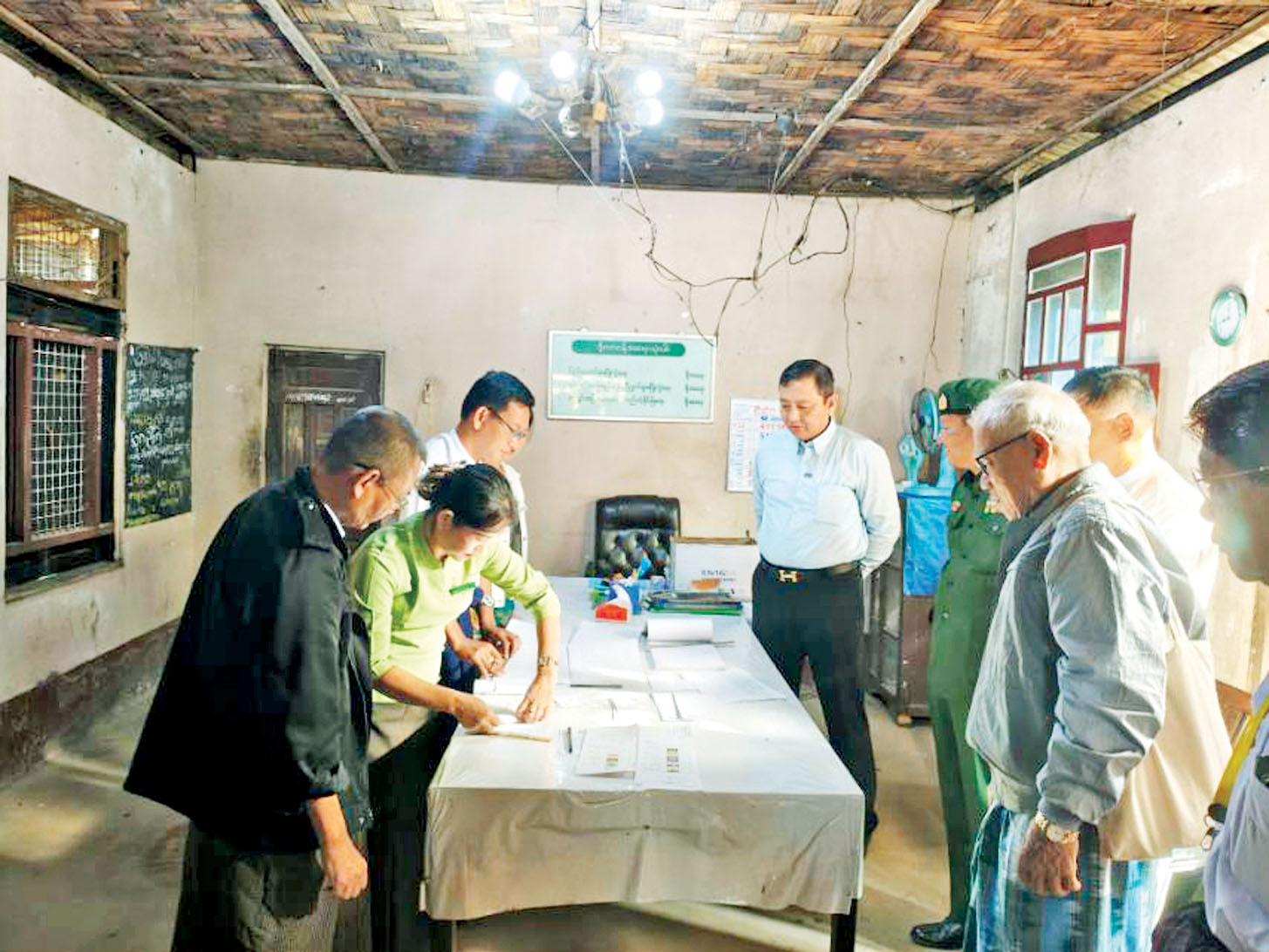 ပြည်ထောင်စုရွေးကောက်ပွဲ ကော်မရှင်အဖွဲ့ဝင် (မွန်ပြည်နယ် တာဝန်ခံ) ဦးကိုကိုလွင်သည် ပြည်နယ် ရွေးကောက်ပွဲကော်မရှင်အဖွဲ့ခွဲဥက္ကဋ္ဌနှင့် အဖွဲ့ဝင်များ၊ ခရိုင်ရွေးကောက်ပွဲ ကော်မရှင်အဖွဲ့ခွဲ အတွင်းရေးမှူးတို့နှင့်အတူ မွန်ပြည်နယ် သံဖြူဇရပ်မြို့နယ်တွင် ရွေးကောက်ပွဲတာဝန် ထမ်းဆောင်မည့်သူများ မဲပေးပိုင်ခွင့်မဆုံးရှုံးစေရေးအတွက် ယနေ့နံနက်ပိုင်းက သက်ဆိုင်ရာ ရပ်ကွက်ကော်မရှင် အဖွဲ့ခွဲရုံးများ၌ ကြိုတင်ဆန္ဒမဲပေးနေမှုနှင့် မဲရုံတည်နေရာ ပြင်ဆင်ထားရှိမှု အခြေအနေများကို လိုက်လံကြည့်ရှုသည်။