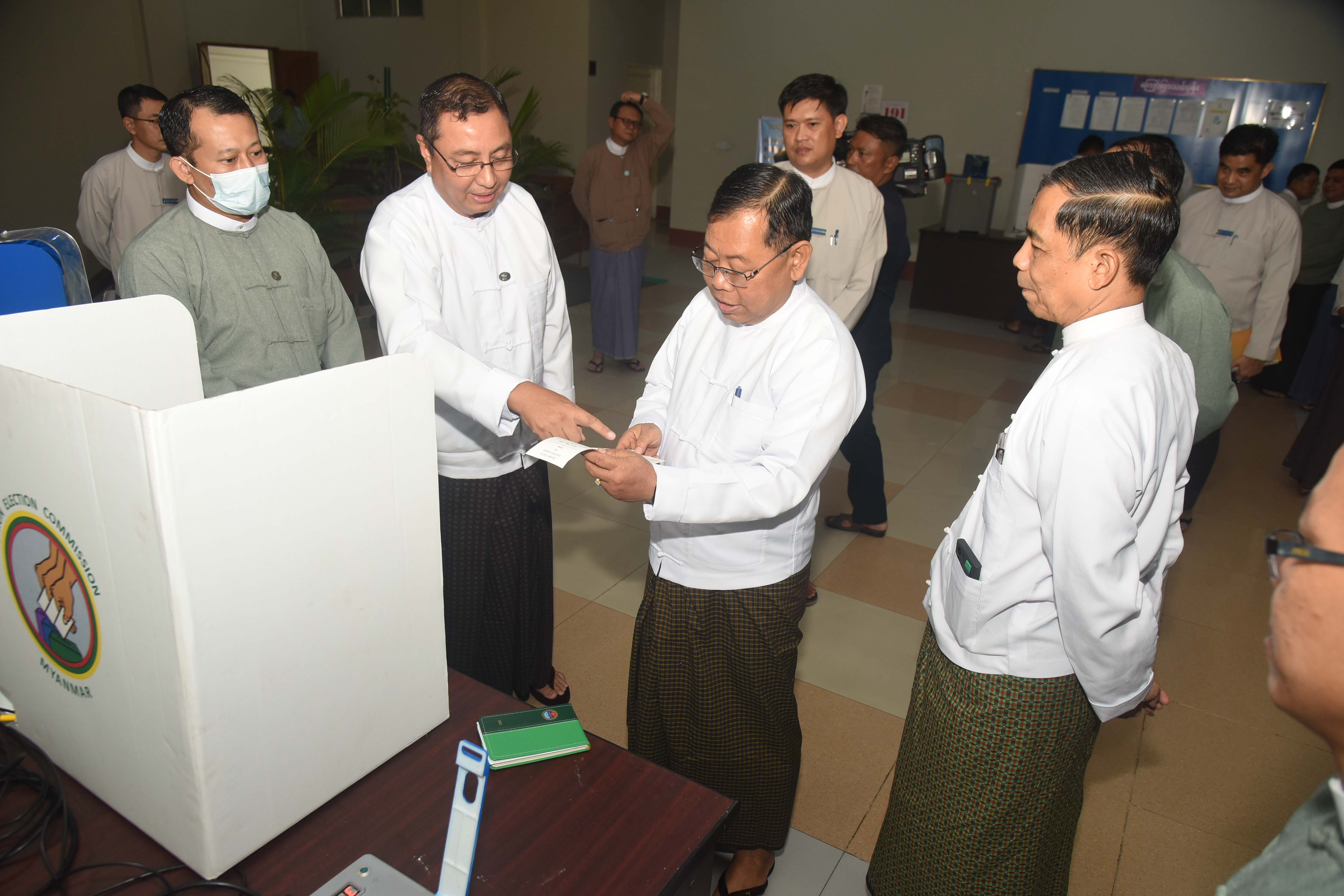 မွန်းလွဲပိုင်းတွင် ပြည်ထောင်စုရွေးကောက်ပွဲကော်မရှင်ရုံးမှ တာဝန်ရှိသူများသည် စက်မှုဝန်ကြီးဌာနသို့ သွားရောက်ပြီး မြန်မာအီလက်ထရောနစ် မဲပေးစက်နှင့်စပ်လျဉ်း၍ ရှင်းလင်းပြောကြားခြင်းနှင့် လက်တွေ့ သရုပ်ပြ စမ်းသပ်မဲပေးခြင်းများကို ဆောင်ရွက်ခဲ့ရာ အရာထမ်း၊ အမှုထမ်း ၈၅ ဦး တက်ရောက်၍ လက်တွေ့မဲပေးခြင်းများ ဆောင်ရွက်ခဲ့ကြောင်း သိရသည်။