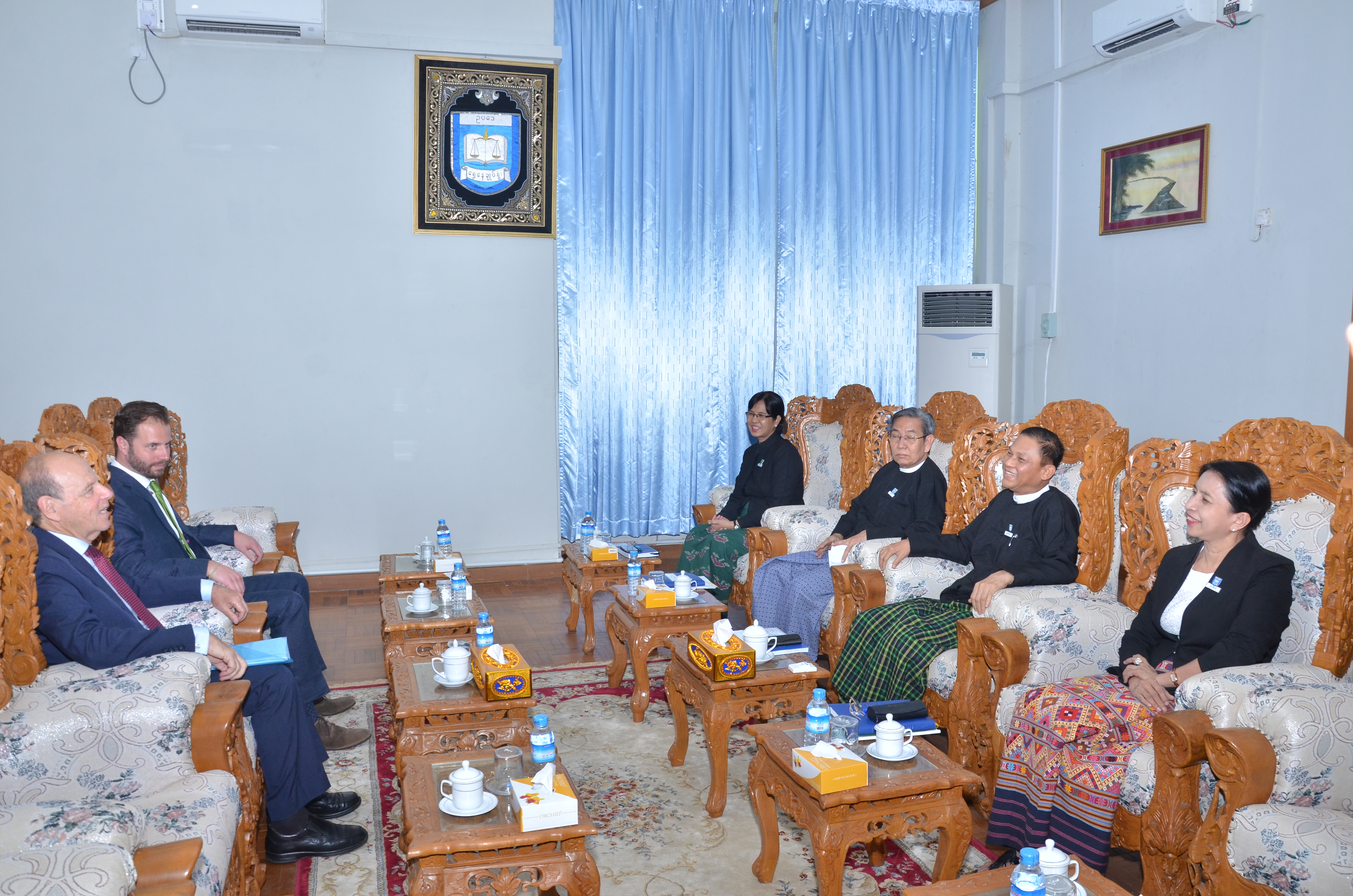 ထိုသို့တွေ့ဆုံစဉ် မြန်မာနိုင်ငံ၏ ဥပဒေရေးရာနှင့် တရားစီရင်ရေးကဏ္ဍ ဖွံ့ဖြိုးတိုးတက်ရေး အတွက် ကြိုးပမ်းဆောင်ရွက်နေမှုများ၊ တရားဥပဒေစိုးမိုးရေးအတွက် တရားမျှတမှုဆိုင်ရာ ပေါင်းစပ်ညှိနှိုင်းရေးညီလာခံကို ၂၀၁၈ ခုနှစ်၊ မတ်လတွင် ကျင်းပခဲ့ပြီး အဆိုပါညီလာခံမှရရှိသည့် အကြံပြုချက်များ၊ ဆွေးနွေးမှုရလဒ်များအပေါ် အခြေပြုရေးဆွဲခဲ့သည့် “ပြည်သူ့အတွက် တရားမျှ တမှု” မဟာဗျူဟာစီမံကိန်း(၂၀၁၉-၂၀၂၃) အကောင်အထည် ဖော်ဆောင်ရွက်နေမှုများ၊ တရား ဥပဒေစိုးမိုးရေးဌာနနှင့် တရားမျှတမှုဆိုင်ရာလုပ်ငန်းများ ပေါင်းစပ်ညှိနှိုင်းရေးအဖွဲ့နှင့်အဖွဲ့ခွဲများ၏ လုပ်ငန်းများ၊ တရားလွှတ်တော်ရှေ့နေများ ကောင်စီအက် ဥပဒေပြင်ဆင်ဆောင်ရွက်နေမှုနှင့် တရားစီရင်ရေးကဏ္ဍတိုးတက်ကောင်းမွန်ရေးအတွက် ရှေ့နေများ၏ အခန်းကဏ္ဍ၊ UNDP နှင့် IDLO တို့၏ တရားဥပဒေစိုးမိုးရေးစင်တာများမှ ဥပဒေအသိပညာပေးလုပ်ငန်းများ၊ MyJusticeနှင့် IBJ တို့၏ ဥပဒေဆိုင်ရာ အထောက်အကူ ပေးရေးလုပ်ငန်းများတွင် ပြည်ထောင်စုရှေ့နေချုပ်ရုံးက ပူးပေါင်းဆောင်ရွက်လျက်ရှိသည့် အခြေအနေများကို ဆွေးနွေးခဲ့ကြကြောင်း သိရသည်။