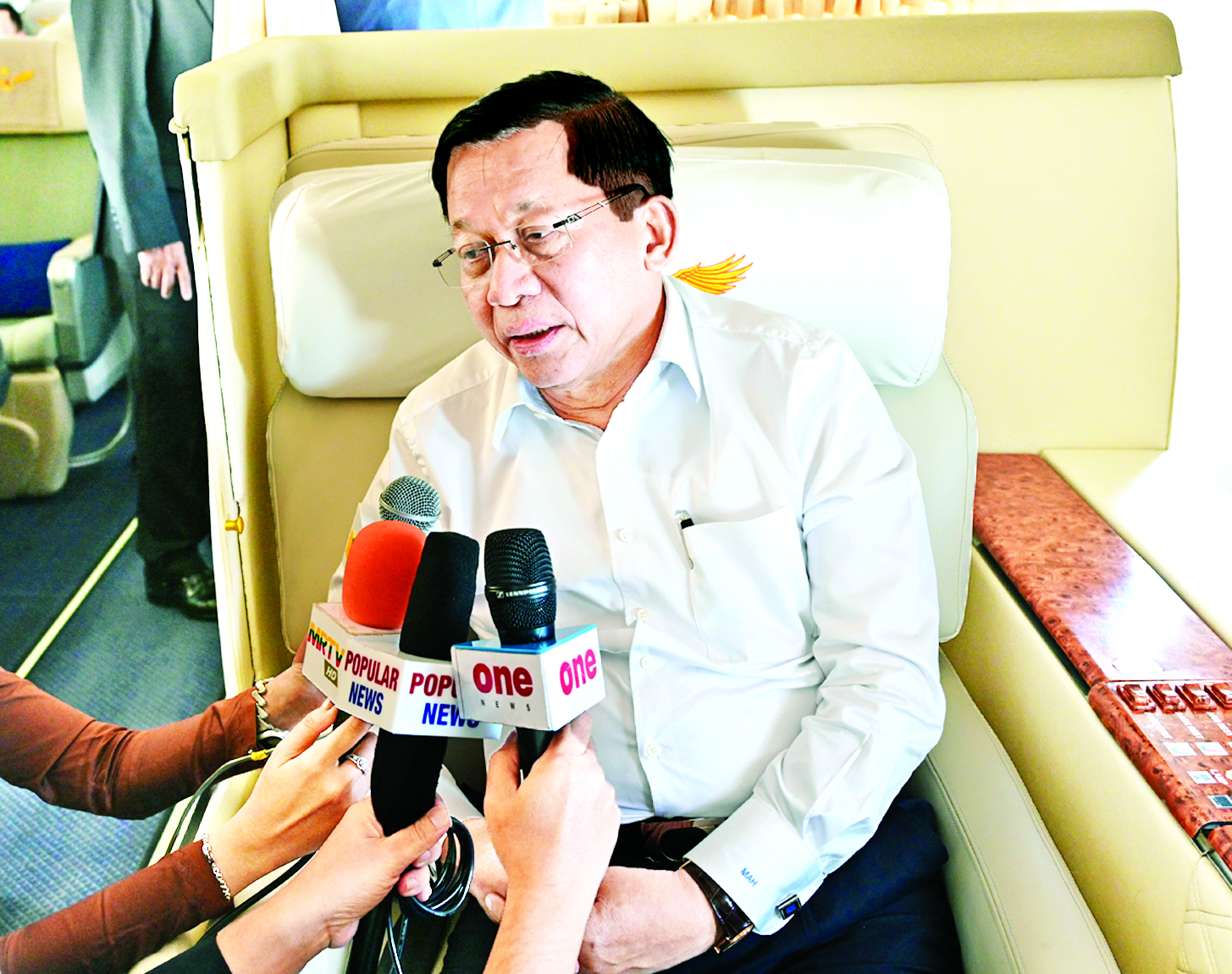 ထိုသို့အထူးလေယာဉ်ဖြင့် ပြန်လည်ထွက်ခွာ လာစဉ် နိုင်ငံတော်ယာယီသမ္မတ နိုင်ငံတော်လုံခြုံရေးနှင့် အေးချမ်းသာယာရေးကော်မရှင် ဥက္ကဋ္ဌသည် အထူးလေယာဉ်ပေါ်၌ မီဒီယာများ၏ သိရှိလိုသည့် မေးမြန်းမှုများကို လက်ခံဖြေကြားခဲ့ရာ မေးမြန်း ဖြေကြားမှု အပြည့်အစုံကို ဖော်ပြအပ်ပါသည်-