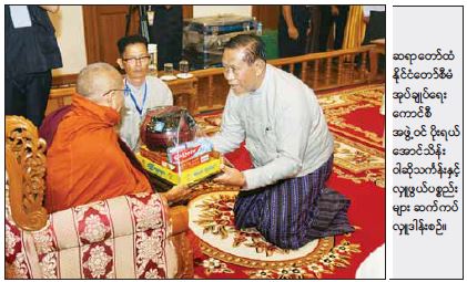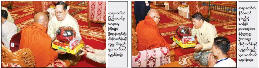 ထို့နောက် နိုင်ငံတော်စီမံအုပ်ချုပ်ရေးကောင်စီ ဒုတိယဥက္ကဋ္ဌ ဒုတိယဝန်ကြီးချုပ်နှင့်ဇနီးတို့က နိုင်ငံတော်သံဃမဟာနာယကအဖွဲ့ ဒုတိယဥက္ကဋ္ဌ၊ ရှမ်းပြည်နယ်၊ ကျောက်မဲမြို့၊ သီဟိုဠ်ပရိယတ္တိ စာသင်တိုက် ပဓာနနာယက၊ အဂ္ဂမဟာပဏ္ဍိတ ဒေါက်တာဘဒ္ဒန္တစန္ဒနသာရ ဆရာတော်ကြီးထံ ဝါဆိုသင်္ကန်းနှင့်လှူဖွယ်ပစ္စည်းများကို ဆက်ကပ်လှူဒါန်းသည်။ ဆက်လက်ပြီး ကောင်စီအတွင်းရေးမှူးနှင့်ဇနီး၊ တွဲဖက်အတွင်းရေးမှူးနှင့်ဇနီး၊ ကောင်စီဝင်များနှင့်ဇနီးများ၊ ပြည်ထောင်စုအဆင့် ပုဂ္ဂိုလ်များ၊ ပြည်ထောင်စုဝန်ကြီးများ၊ ညှိနှိုင်းကွပ်ကဲရေးမှူး(ကြည်း၊ ရေ၊လေ) နှင့် အဆင့်မြင့်တပ်မတော်အရာရှိကြီးများက ဆရာတော်၊ သံဃာတော်များထံ ဝါဆိုသင်္ကန်းနှင့်လှူဖွယ်ပစ္စည်းများကို အသီးသီးဆက်ကပ်လှူဒါန်းကြသည်။