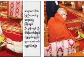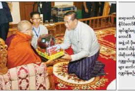 ထို့နောက် နိုင်ငံတော်စီမံအုပ်ချုပ်ရေးကောင်စီဥက္ကဋ္ဌ နိုင်ငံတော်ဝန်ကြီးချုပ်နှင့်ဇနီးတို့က သန်လျင်မင်းကျောင်းဆရာတော်ကြီးထံ ဝါဆိုသင်္ကန်းနှင့်လှူဖွယ်ပစ္စည်းများကို ဆက်ကပ်လှူဒါန်းသည်။