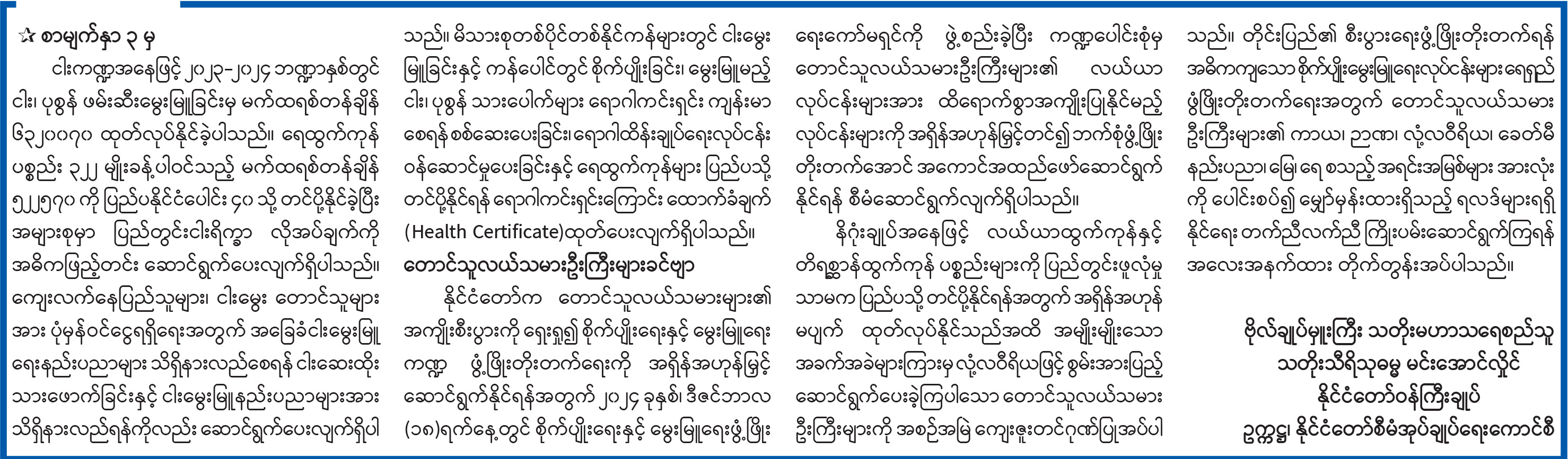 သတင်းဆောင်းပါးများ