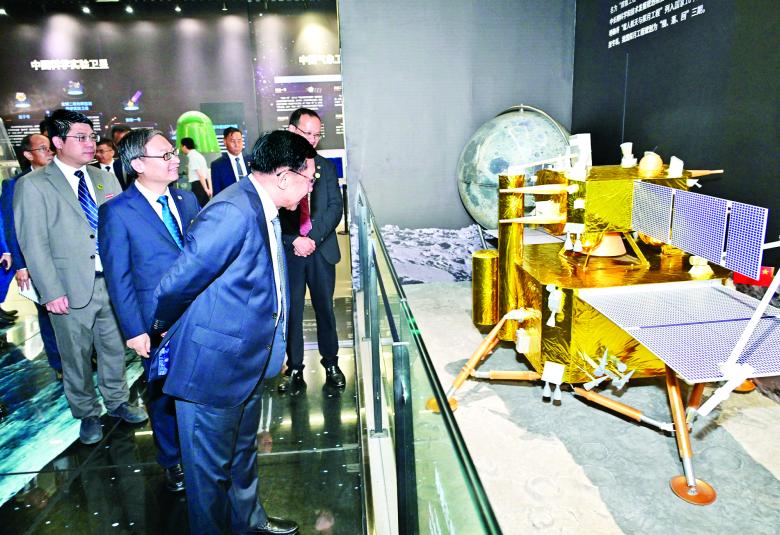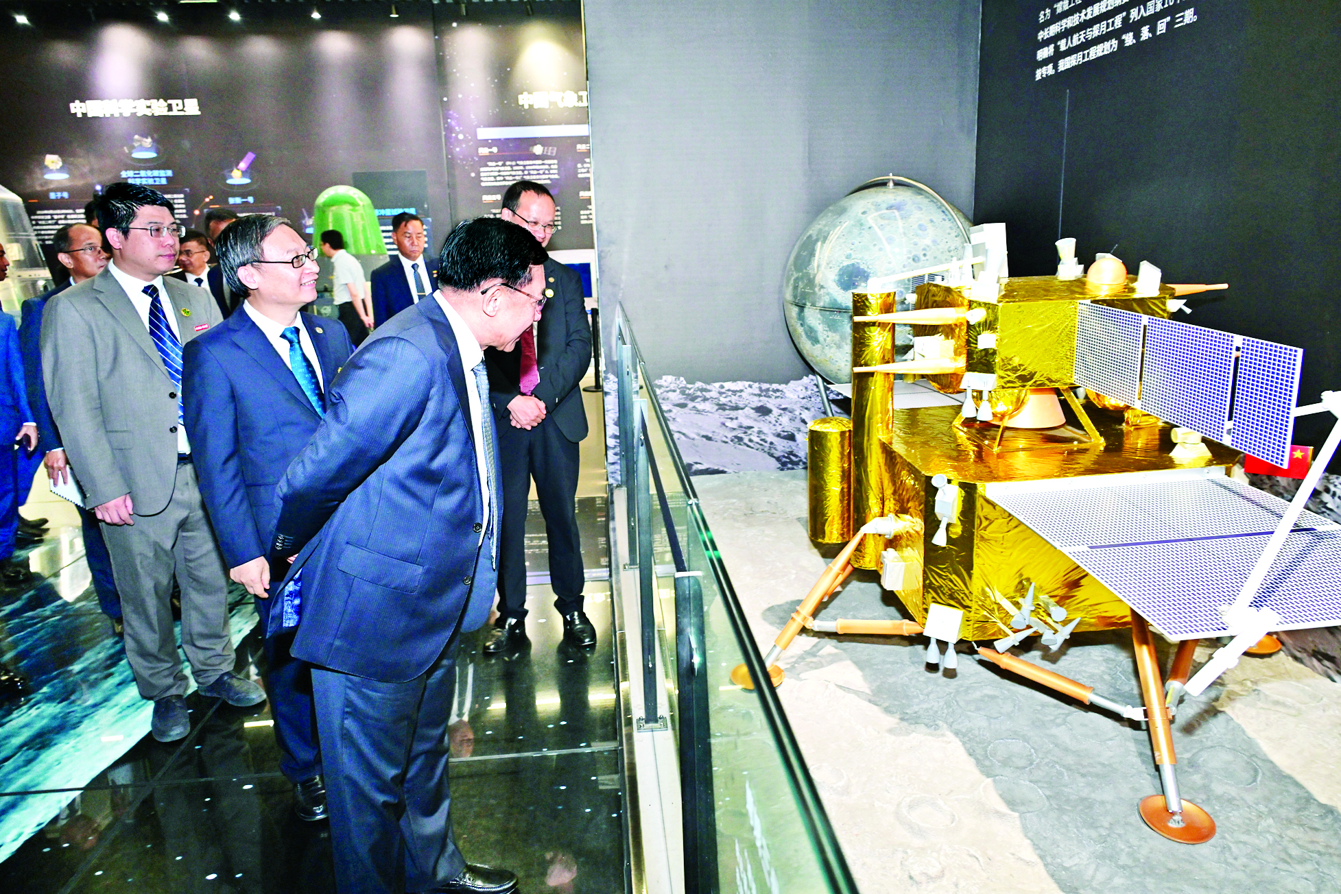 ယင်းနောက် တက္ကသိုလ် ပြတိုက်အတွင်း၌ တက္ကသိုလ်၏ မိတ်ဆက်ဗီဒီယိုကို ကြည့်ရှု၍ အာကာသ ပြခန်းအတွင်း ခင်းကျင်းပြသထားသည့် မစ်ဇိုင်းများထုတ်လုပ်ခဲ့မှု၊ ဒုံးပျံများ၊ ဂြိုဟ်တုများ သုတေသနပြု တီထွင် ထုတ်လုပ်ခဲ့မှု၊ နိုင်ငံတော်ကာကွယ်ရေးအတွက် နျူကလီးယားဗုံးနှင့် ဟိုက်ဒရိုဂျင်ဗုံးများ စမ်းသပ် တီထွင်အောင်မြင်ခဲ့မှု၊ ကဏ္ဍအလိုက် ဂြိုဟ်တုများတီထွင်ထုတ်လုပ် လွှတ်တင်ခဲ့မှု၊ အာကာသပိုင်းဆိုင်ရာ အောင်မြင်မှုများ၊ လကမ္ဘာသို့ ဆင်းသက်မှုပြခန်း၊ အာကာသယာဉ်များ လွှတ်တင်ခဲ့မှု၊ တရုတ်နိုင်ငံမှ ပေါ်ထွန်းခဲ့သည့်အာကာသပညာရှင်များ ပြခန်းတို့အား လှည့်လည် ကြည့်ရှုလေ့လာကြရာ တာဝန်ရှိသူများက ရှင်းလင်းတင်ပြကြသည်။
