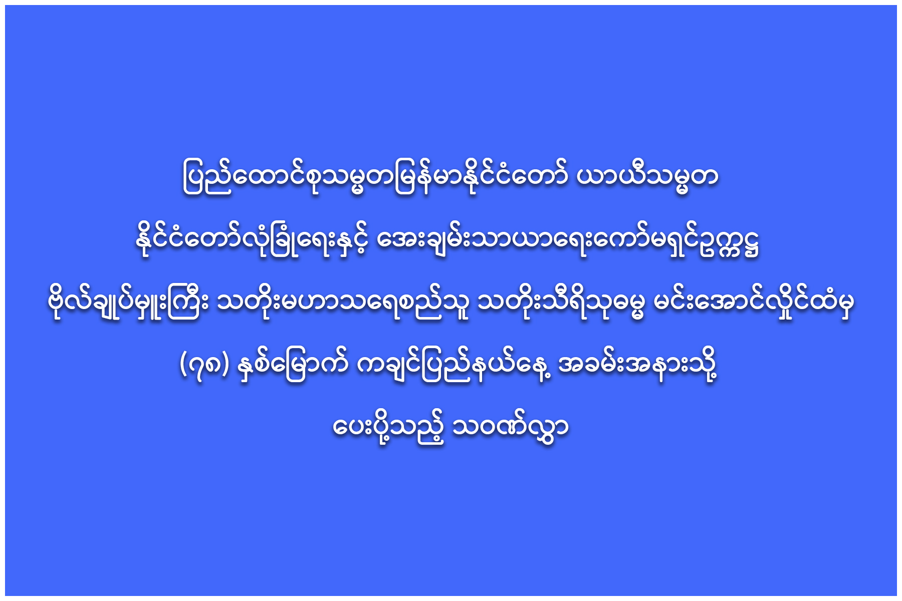 (၇၈) နှစ်မြောက် ကချင်ပြည်နယ်နေ့ အခမ်းအနားသို့ ပေးပို့သည့် သဝဏ်လွှာ