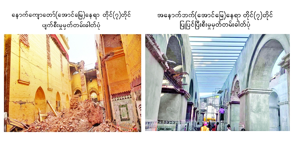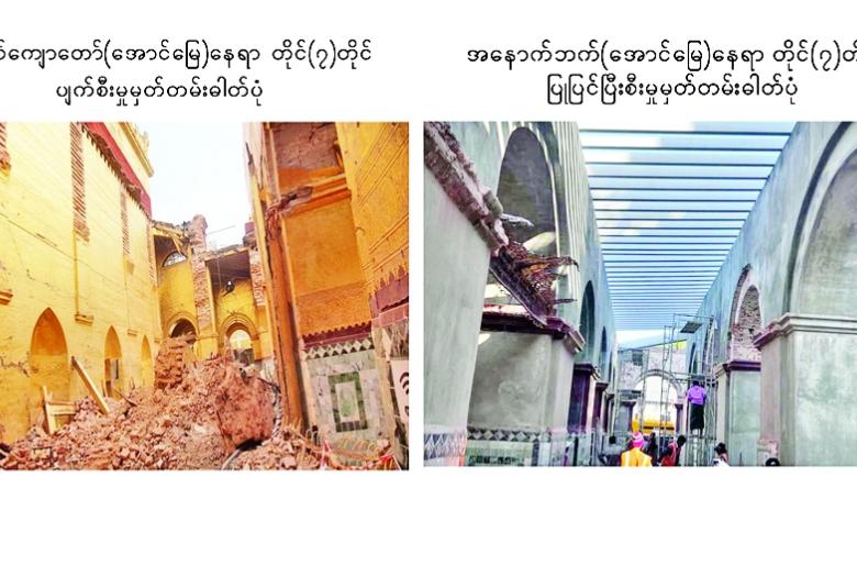 ငလျင်ဒဏ်ကြောင့် ထိခိုက်ပျက်စီးခဲ့ရမှုများအား ပြန်လည်ပြုပြင်မွမ်းမံနေမှုများ ကြည့်ရှုစစ်ဆေး