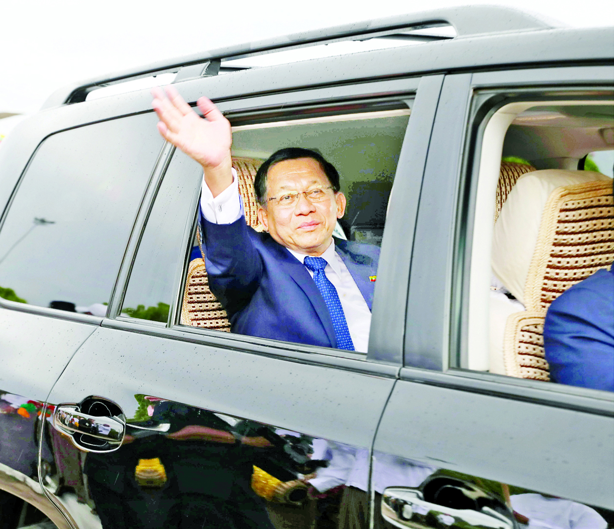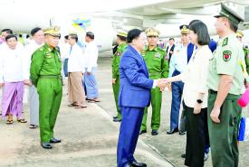 ထို့နောက် ပြည်ထောင်စုသမ္မတ မြန်မာနိုင်ငံတော် ယာယီသမ္မတ နိုင်ငံတော်လုံခြုံရေးနှင့် အေးချမ်း သာယာရေးကော်မရှင် ဥက္ကဋ္ဌ ဗိုလ်ချုပ်မှူးကြီး မင်းအောင်လှိုင် ဦးဆောင်သည့် ကိုယ်စားလှယ် အဖွဲ့သည် ညနေပိုင်းတွင် နေပြည်တော်သို့ ပြန်လည်ရောက်ရှိကြရာ ကော်မရှင်ဒုတိယ ဥက္ကဋ္ဌ ဒုတိယဗိုလ်ချုပ်မှူးကြီး စိုးဝင်း၊ ကော်မရှင်အဖွဲ့ဝင် နိုင်ငံတော်ဝန်ကြီးချုပ် ဦးညိုစော၊ ကော်မရှင် အဖွဲ့ဝင် အမှုဆောင်ချုပ် ဦးအောင်လင်းဒွေး၊ ကော်မရှင်အဖွဲ့ဝင်များ၊ ပြည်ထောင်စုဝန်ကြီးများ၊ နေပြည်တော်ကောင်စီဥက္ကဋ္ဌ၊ ကာကွယ်ရေး ဦးစီးချုပ်ရုံးမှ အဆင့်မြင့် တပ်မတော်အရာရှိကြီးများ၊ နေပြည်တော်တိုင်းစစ်ဌာနချုပ်တိုင်းမှူး၊ မြန်မာနိုင်ငံဆိုင်ရာ တရုတ်ပြည်သူ့သမ္မတနိုင်ငံသံရုံး၊ စစ်သံရုံးတို့မှ တာဝန်ရှိသူများ၊ မြန်မာနိုင်ငံသား တရုတ်နွယ်ဖွား ပြည်သူများ၊ တရုတ်ရိုးရာနဂါးနှင့် ခြင်္သေ့အကအဖွဲ့၊ တိုင်းရင်းသား ယဉ်ကျေးမှုအဖွဲ့များနှင့် အကအဖွဲ့ များ၊ ဘာသာပေါင်းစုံအသင်း အဖွဲ့ များ၊ အနုပညာရှင်များနှင့် ဒေသခံ ပြည်သူများက တပ်မတော် လေဆိပ်၌ ကြိုဆိုနှုတ်ဆက်ကြသည်။