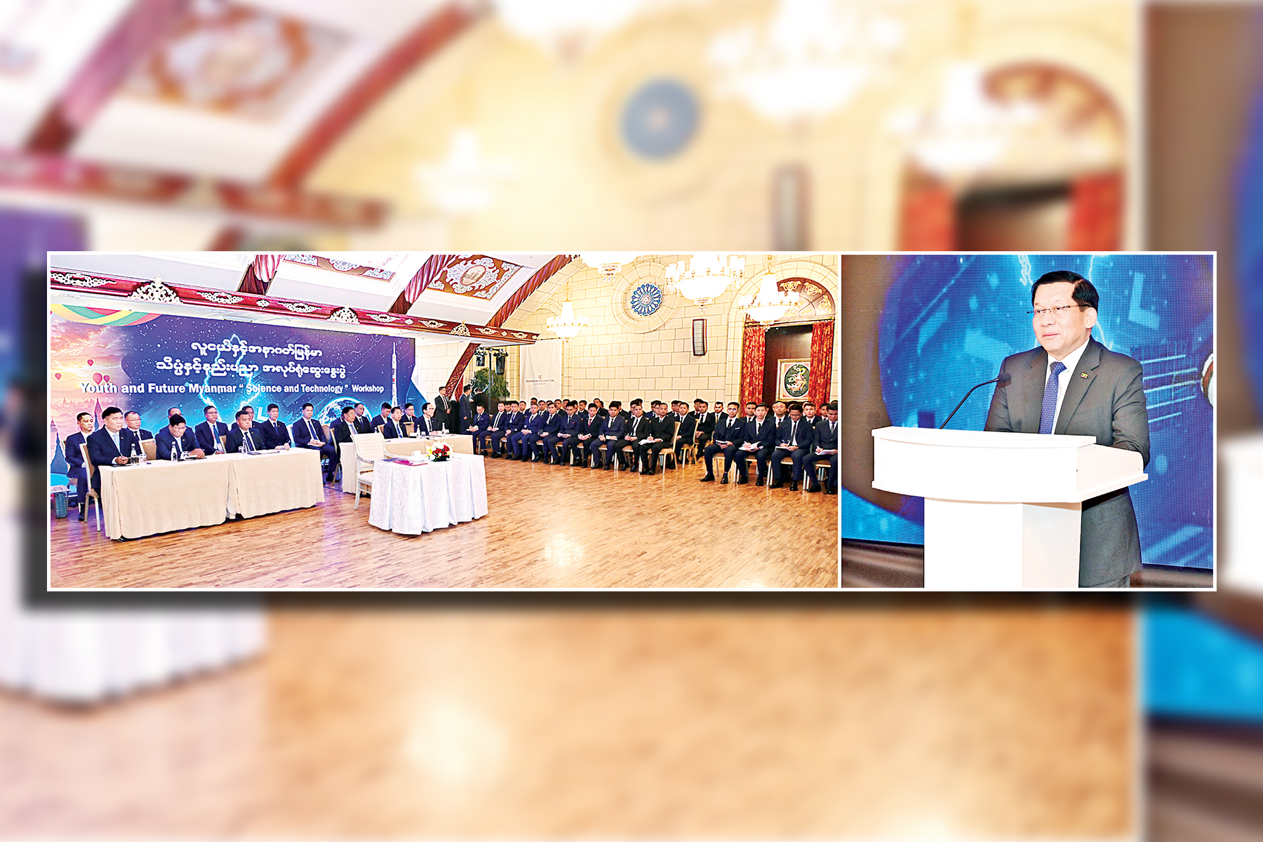 “လူငယ်နှင့်အနာဂတ်မြန်မာ-သိပ္ပံနှင့်နည်းပညာ” ခေါင်းစဉ်ဖြင့် သိပ္ပံပညာရပ်ဆိုင်ရာ အလုပ်ရုံဆွေးနွေး ပွဲကို ယနေ့နံနက်ပိုင်းတွင် ရုရှားဖက်ဒရေးရှင်းနိုင်ငံ မော်စကိုမြို့ RADISSON COLLECTION ဟိုတယ် Conference Hall ၌ ကျင်းပပြုလုပ်ရာ ပြည်ထောင်စုသမ္မတမြန်မာနိုင်ငံတော် ယာယီသမ္မတ နိုင်ငံတော်လုံခြုံရေးနှင့် အေးချမ်းသာယာရေး ကော်မရှင်ဥက္ကဋ္ဌ ဗိုလ်ချုပ်မှူးကြီးမင်းအောင်လှိုင် တက်ရောက်အမှာစကား ပြောကြားသည်။