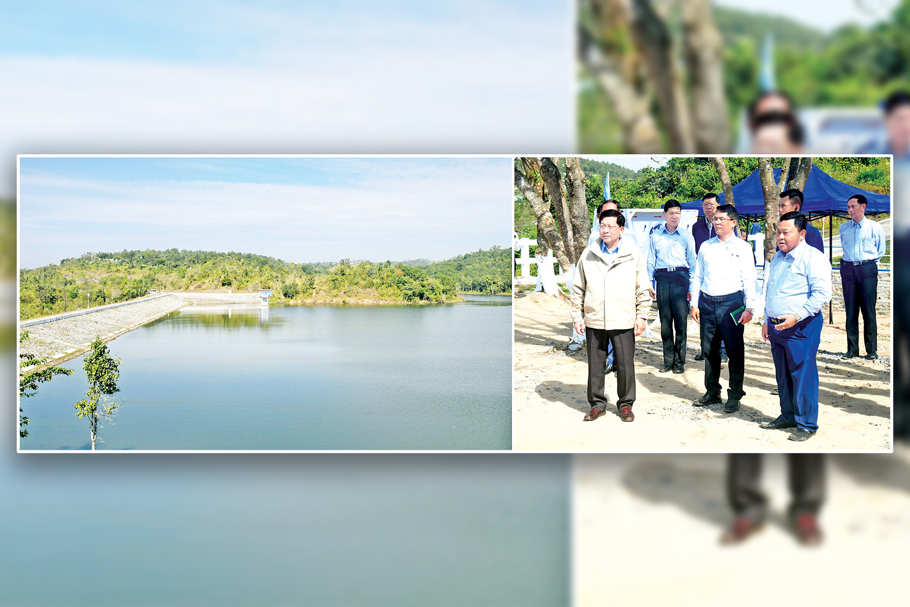ထို့နောက် နိုင်ငံတော်ယာယီသမ္မတ နိုင်ငံတော်လုံခြုံရေးနှင့် အေးချမ်းသာယာရေးကော်မရှင် ဥက္ကဋ္ဌနှင့် အဖွဲ့ဝင်များသည် ဆင်လမ်းရေလှောင်တမံအတွင်း ရေသိုလှောင်ထားရှိမှုနှင့် ရေပိုလွှဲနေရာ၌ အဆင့်မြှင့်တင် ဆောင်ရွက်ထားရှိမှု အခြေအနေများကို ကြည့်ရှုစစ်ဆေးခဲ့ပြီး တာဝန်ရှိသူများ၏ တင်ပြချက်များအပေါ် ယခုကဲ့သို့ ဆင်လမ်းရေလှောင်တမံရေပိုလွှဲ နှစ်ပေမြှင့်တင်ခြင်းနှင့် စည်သာ ရေလှောင်တမံ ရေပိုလွှဲသုံးပေမြှင့်တင်ခြင်းများကို ကာလတိုအတွင်း လျင်မြန်ထိရောက်စွာ ဆောင်ရွက် နိုင်ခဲ့သည့်အတွက် ဒေသနှင့် ဒေသခံများ၏ လူမှုအကျိုးစီးပွားကို များစွာ အထောက်အကူဖြစ်စေကြောင်း၊ ရေလှောင်တမံများ၏ ရေဝေရေလဲ သတ်မှတ်ဧရိယာ အကွာအဝေးအတွင်း သစ်တောသစ်ပင်များ ဖုံးလွှမ်းမှုရှိစေရေး၊ သီးနှံများ စိုက်ပျိုးမှု မရှိစေရေးတို့အတွက်လည်း စဉ်ဆက်မပြတ် ထိန်းသိမ်းကြပ်မတ် ဆောင်ရွက်သွားရန်လိုကြောင်း၊ ထိုသို့ ဆောင်ရွက်ခြင်းအားဖြင့် ရေအရင်းအမြစ်များကို ထိန်းသိမ်းနိုင်မည်ဖြစ်ပြီး ရေဖူလုံမှုကို ပိုမိုဖြစ်ပေါ်စေနိုင်မည်ဖြစ်ကြောင်း မှာကြားသည်။