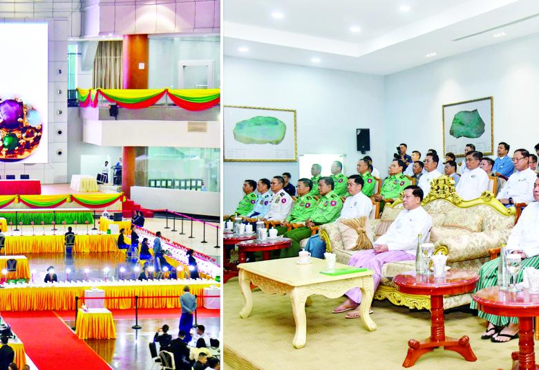 အကြိမ် (၆၀) မြောက် မြန်မာ့ကျောက်မျက်ရတနာပြပွဲ ဖွင့်ပွဲအခမ်းအနားကို ယနေ့ နံနက်ပိုင်းတွင် နေပြည်တော်ရှိ မဏိရတနာကျောက်စိမ်းခန်းမ၌ ကျင်းပရာ ပြည်ထောင်စုသမ္မတမြန်မာနိုင်ငံတော် ယာယီသမ္မတ နိုင်ငံတော်လုံခြုံရေးနှင့် အေးချမ်းသာယာရေးကော်မရှင် ဥက္ကဋ္ဌ ဗိုလ်ချုပ်မှူးကြီး မင်းအောင်လှိုင် တက်ရောက်ချီးမြှင့်သည်။