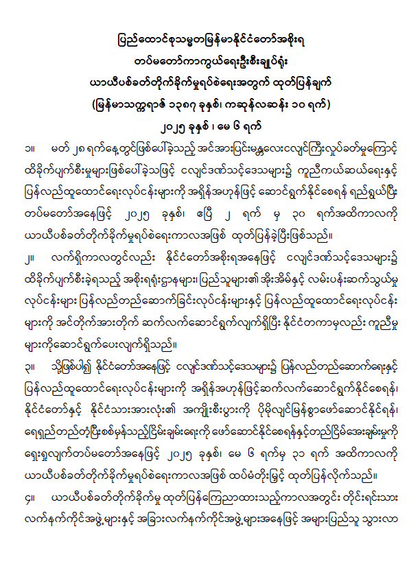 ပြည်ထောင်စုသမ္မတမြန်မာနိုင်ငံတော်အစိုးရ တပ်မတော်ကာကွယ်ရေးဦးစီးချုပ်ရုံး ယာယီပစ်ခတ်တိုက်ခိုက်မှုရပ်စဲရေးအတွက် ထုတ်ပြန်ချက်