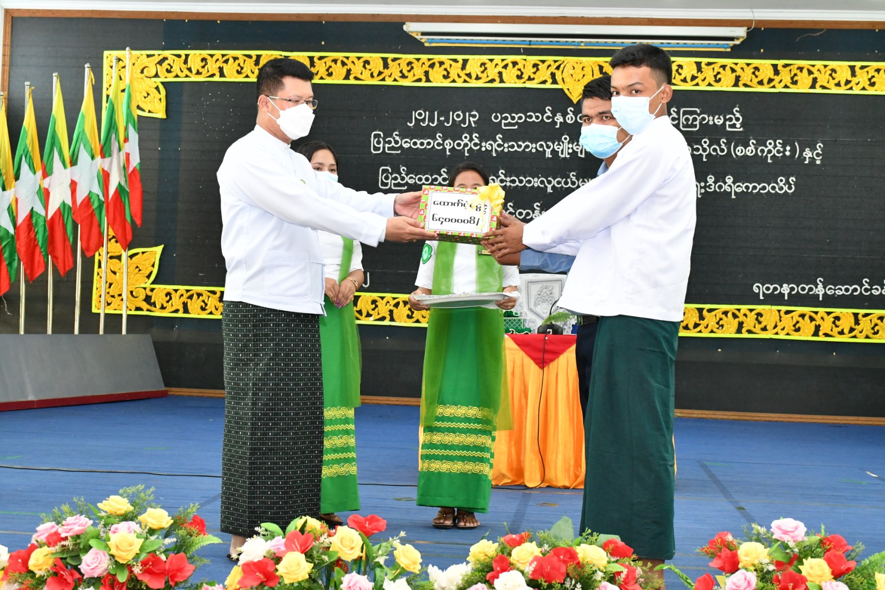 ဦးစွာ တိုင်းဒေသကြီး ဝန်ကြီးချုပ်က အမှာစကား ပြောကြားပြီး ထောက်ပံ့ငွေများ ပေးအပ်ကာ ကျောင်းသား ကျောင်းသူများကိုယ်စား ကျောင်းသူတစ်ဦးက ကျေးဇူးတင်စကား ပြန်လည်ပြောကြားသည်။ ဧရာဝတီတိုင်းဒေသကြီးမှ ပြည်ထောင်စု တိုင်းရင်းသားလူမျိုးများ ဖွံ့ဖြိုးတိုးတက်ရေး တက္ကသိုလ် (စစ်ကိုင်း)တွင် ပညာရေးဘွဲ့(B.Ed) (၅)နှစ်သင်တန်း အမှတ်စဉ်(၁၀) တက်ရောက်မည့် ကျောင်းသား ကျောင်းသူ ၂၅ ဦး နှင့် ပြည်ထောင်စု တိုင်းရင်းသား လူငယ်များ စွမ်းရည်ဖွံ့ဖြိုးရေး ဒီဂရီကောလိပ် (ရန်ကုန်/စစ်ကိုင်း)တွင် ပထမနှစ် ဝိဇ္ဇာ/သိပ္ပံနှင့် AGTI သင်တန်းများသို့ တက်ရောက်မည့် ကျောင်းသား ကျောင်းသူ ၃၉ ဦး စုစုပေါင်း ၆၄ ဦးရှိကြောင်း သိရသည်။