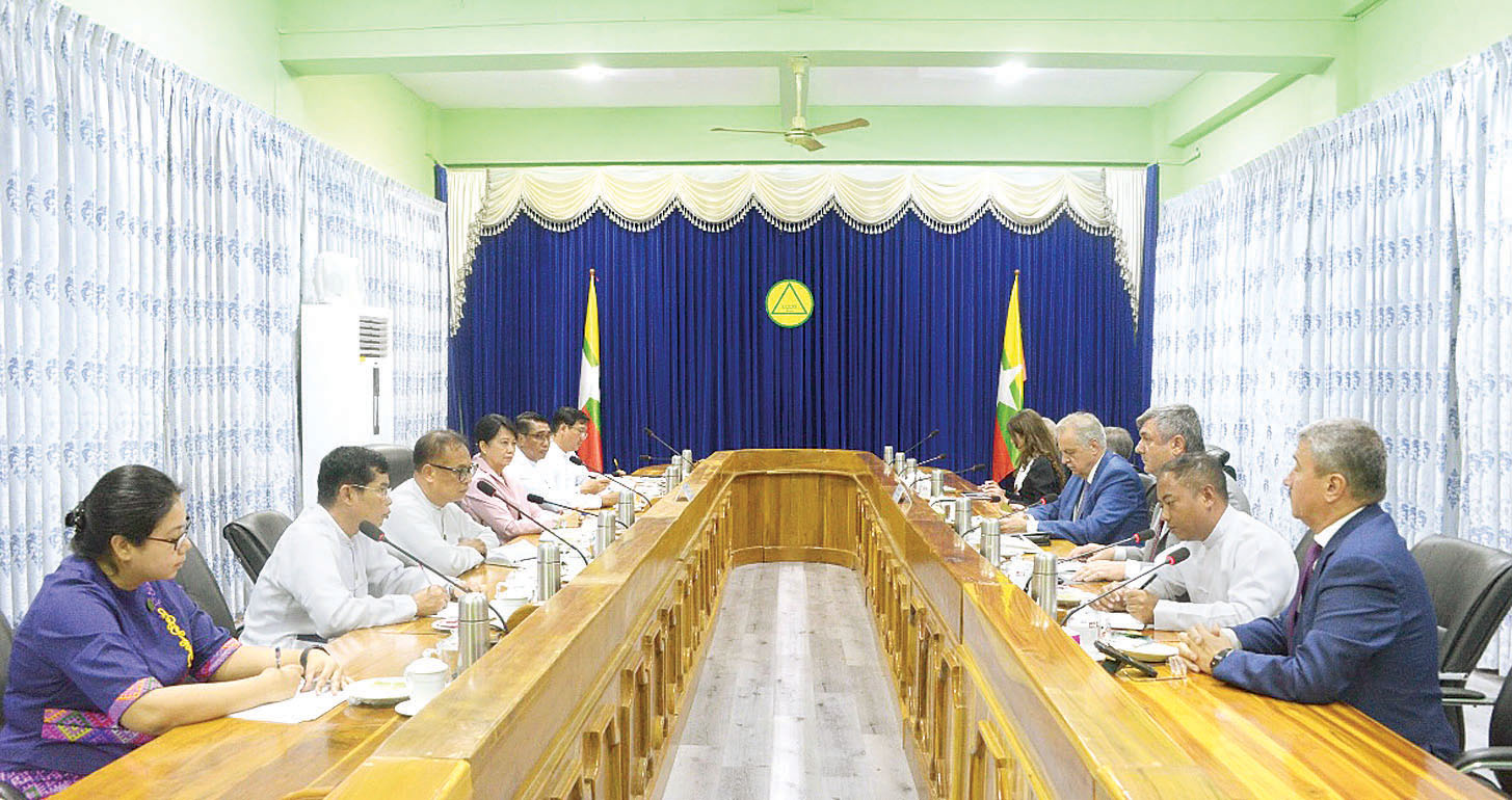 ပညာရေးဝန်ကြီးဌာန ပြည်ထောင်စုဝန်ကြီး ဒေါက်တာချောချောစိန်သည် ရုရှားဖက်ဒရေးရှင်းနိုင်ငံ စိန့်ပီတာစဘတ်မြို့ အစိုးရအဖွဲ့ဝင် ပြည်ပဆက်ဆံရေးကော်မတီ ဥက္ကဋ္ဌ Mr. Evgeny Grigoryev ဦးဆောင်သော ကိုယ်စားလှယ်အဖွဲ့အား ယမန်နေ့ညနေပိုင်းက နေပြည်တော် ပညာရေးဝန်ကြီးဌာန ရုံးအမှတ်(၁၃)ရှိ ဧည့်ခန်းမ၌ လက်ခံတွေ့ဆုံသည်။