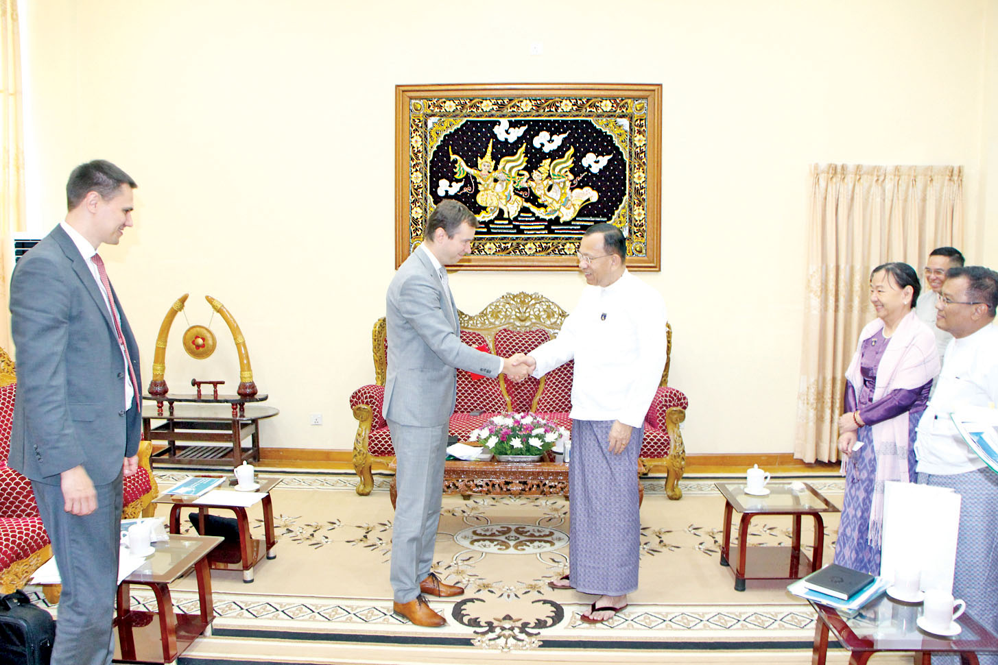 ဘဏ္ဍာရေးနှင့်အခွန်ဝန်ကြီးဌာန ပြည်ထောင်စုဝန်ကြီး ဒေါက်တာကံဇော်သည် PJSC “Sberbank of Russia” ကုမ္ပဏီ၏ ဒုတိယဥက္ကဋ္ဌ မစ္စတာအီဗန်နိုဆော့ဗ် ဦးဆောင်သော ကိုယ်စားလှယ်အဖွဲ့အား ယနေ့နံနက်ပိုင်းတွင် နေပြည်တော်ရှိ ပြည်တွင်းအခွန်များဦးစီးဌာန ရုံးအမှတ် (၄၆) ၌ လက်ခံတွေ့ဆုံသည်။