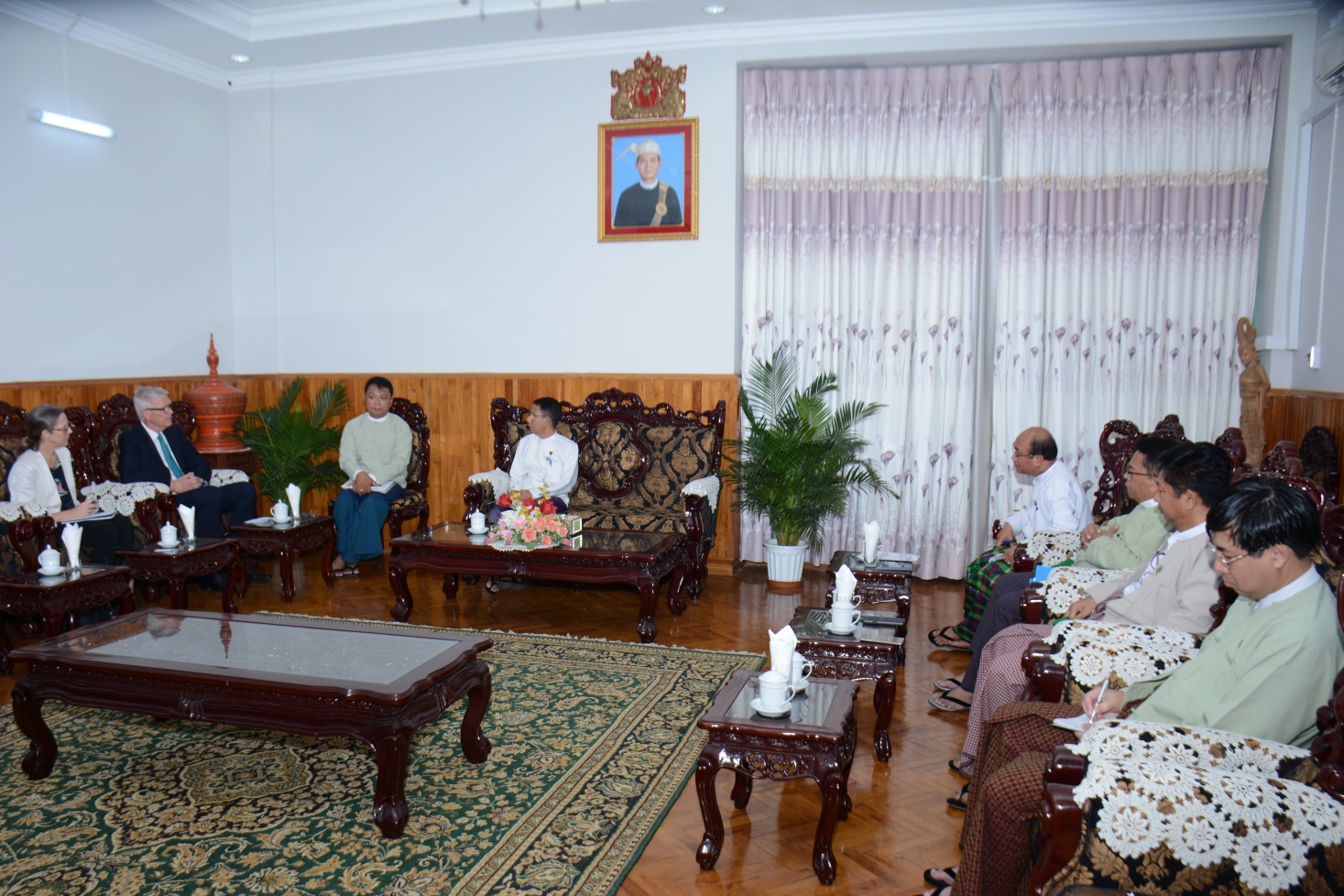 ဒိန်းမတ်နိုင်ငံ သံအမတ်ကြီးနှင့်တွေ့ဆုံစဉ် ဒိန်းမတ်-မြန်မာနှစ်နိုင်ငံ ပူးပေါင်းဆောင်ရွက်သည့် ရေရှည်တည်တံ့စေသော ကမ်းရိုးတန်း ငါးလုပ်ငန်းစီမံကိန်း (၂၀၁၆-၂၀၂၀)၏ ယခုနှစ်နှစ်ခွဲကာလအတွင်း ဆောင်ရွက်ခဲ့မှုများနှင့် ဆက်လက်ဆောင်ရွက်သွားမည့် အစီအစဉ်များ၊ စီမံကိန်းကျေးရွာများတွင် စီမံကိန်း၏ မျှော်မှန်းရလဒ်နှင့် အညီကျေးရွာ၏ အသက်မွေးဝမ်းကြောင်း လုပ်ငန်းများကို အထောက်အပံ့ဖြစ်သော အစားအစားဘေးကင်းလုံခြုံရေးနှင့် သန့်ရှင်းမှုဆိုင်ရာ သင်တန်းများပို့ချပေးနေမှု ဝန်ထမ်းများ၏ စွမ်းဆောင်ရည် မြှင့်တင်ခြင်းသင်တန်း စီစဉ်ဆောင်ရွက်ပေးမှု ကိစ္စရပ်များ ကိုရင်းနှီးပွင့်လင်းစွာ အမြင်ချင်းဖလှယ် ဆွေးနွေးခဲ့ကြသည်။