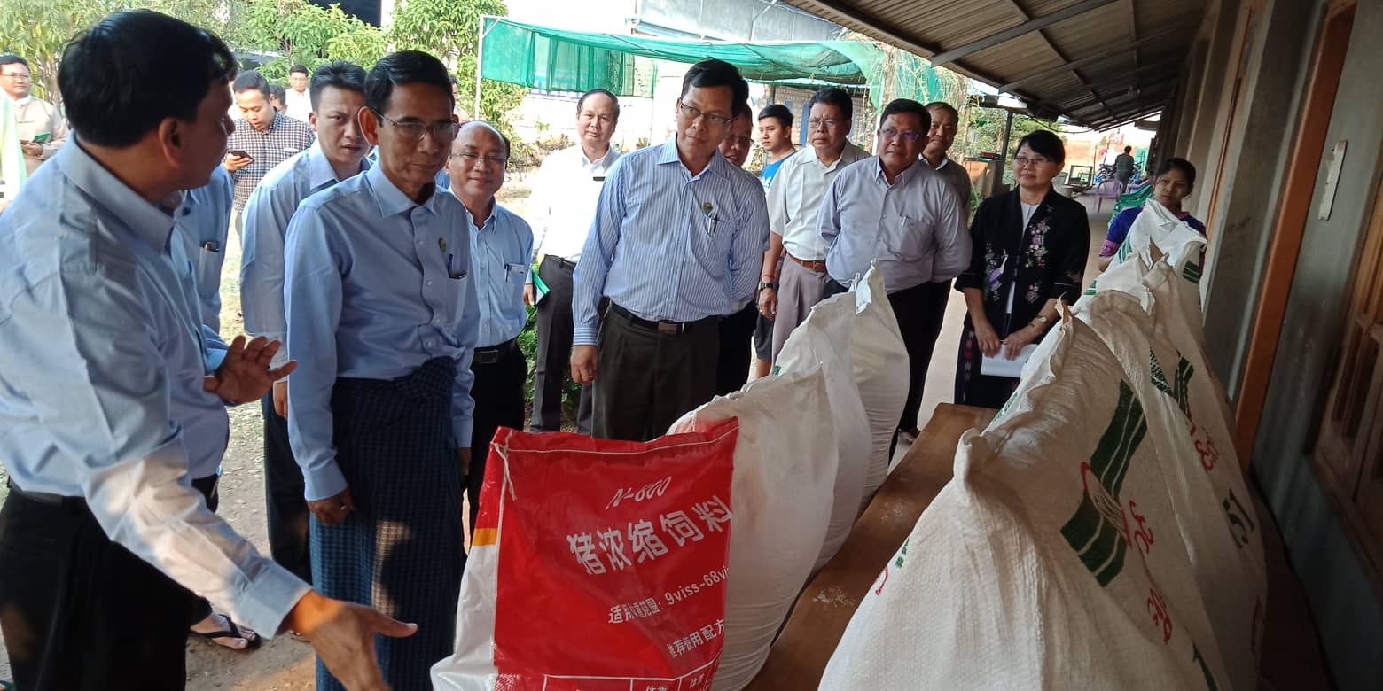 ထို့နောက် ဒေသခံ တိုင်းရင်းသားတောင်သူများ၊ စက်ရုံတာဝန်ရှိသူများနှင့် တွေ့ဆုံ၍ တိရစ္ဆာန်အစာများကို ပြည်တွင်း၌ ပြည့်စုံဖူလုံစွာ ထုတ်လုပ်နိုင်ရေးအတွက် စိုက်ပျိုးထုတ်လုပ်သူများနှင့် လုပ်ငန်းရှင်များ ပူးပေါင်းဆောင်ရွက်ရန် လိုအပ်ချက်များအား ပြည်ထောင်စုဝန်ကြီးက ဆွေးနွေးပြောကြားခဲ့ကြောင်း သိရသည်။