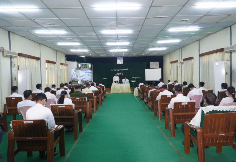 ဆက်လက်၍ ပြည်ထောင်စုဝန်ကြီး၊ ဧရာဝတီတိုင်းဒေသကြီးဝန်ကြီးချုပ်၊ ဒုတိယဝန်ကြီး၊ တိုင်းဒေသကြီး ဝန်ကြီးများသည် စက်ရုံအစည်းအဝေးခန်းမ၌ စက်ရုံဝန်ထမ်းများနှင့် တွေ့ဆုံသည်။