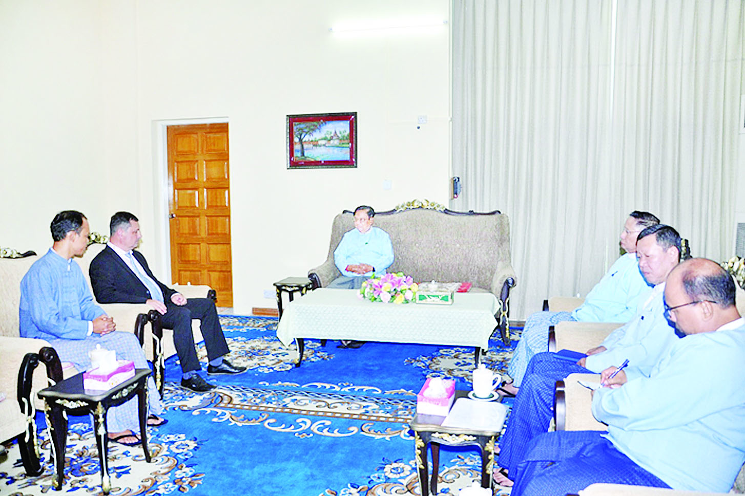 စက်မှုဝန်ကြီးဌာန ပြည်ထောင်စုဝန်ကြီး ဒေါက်တာချာလီသန်းသည် ရုရှားဖက်ဒရေးရှင်းနိုင်ငံ Tyazh-promexport Co., Ltd. (TPE) မှ Chief Engineer Mr. Akeksandr Senin အား ယနေ့မွန်းလွဲပိုင်းတွင် စက်မှုဝန်ကြီးဌာန ရုံးအမှတ် (၃၀) ဧည့်ခန်းမဆောင်၌ လက်ခံတွေ့ဆုံသည်။