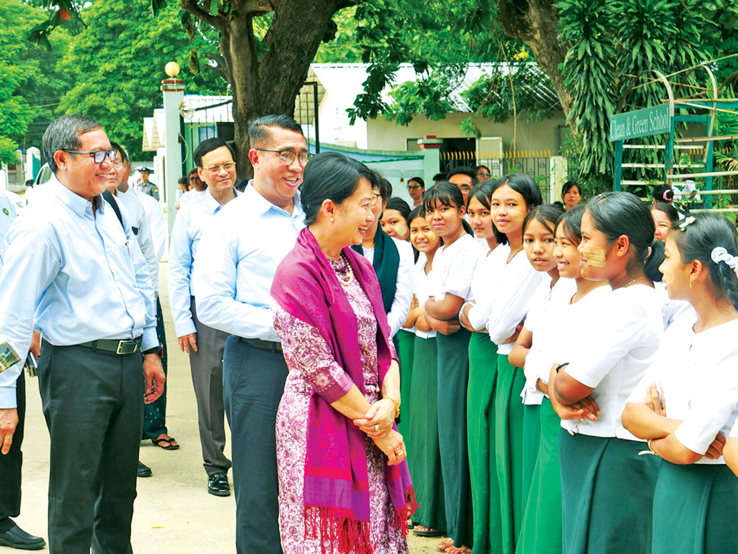ယင်းနောက် စစ်ကိုင်းမြို့ အမှတ်(၁) အခြေခံပညာအထက်တန်းကျောင်းနှင့် စစ်ကိုင်းပညာရေး ဒီဂရီကောလိပ်ကျောင်းများမှ ဆရာ ဆရာမများ၊ ကျောင်းသား ကျောင်းသူများနှင့် တွေ့ဆုံအမှာစကား ပြောကြားပြီး ကျောင်းအတွင်း စာသင်ဆောင်ပြုပြင် တည်ဆောက်ထားရှိမှု၊ ယာယီစာသင်ဆောင် များတွင် ကျောင်းသား ကျောင်းသူများ စိတ်အေးချမ်းသာစွာ သင်ယူနေမှုအခြေအနေများကို လှည့်လည်ကြည့်ရှုကာ လိုအပ်သည်များ မှာကြားသည်။