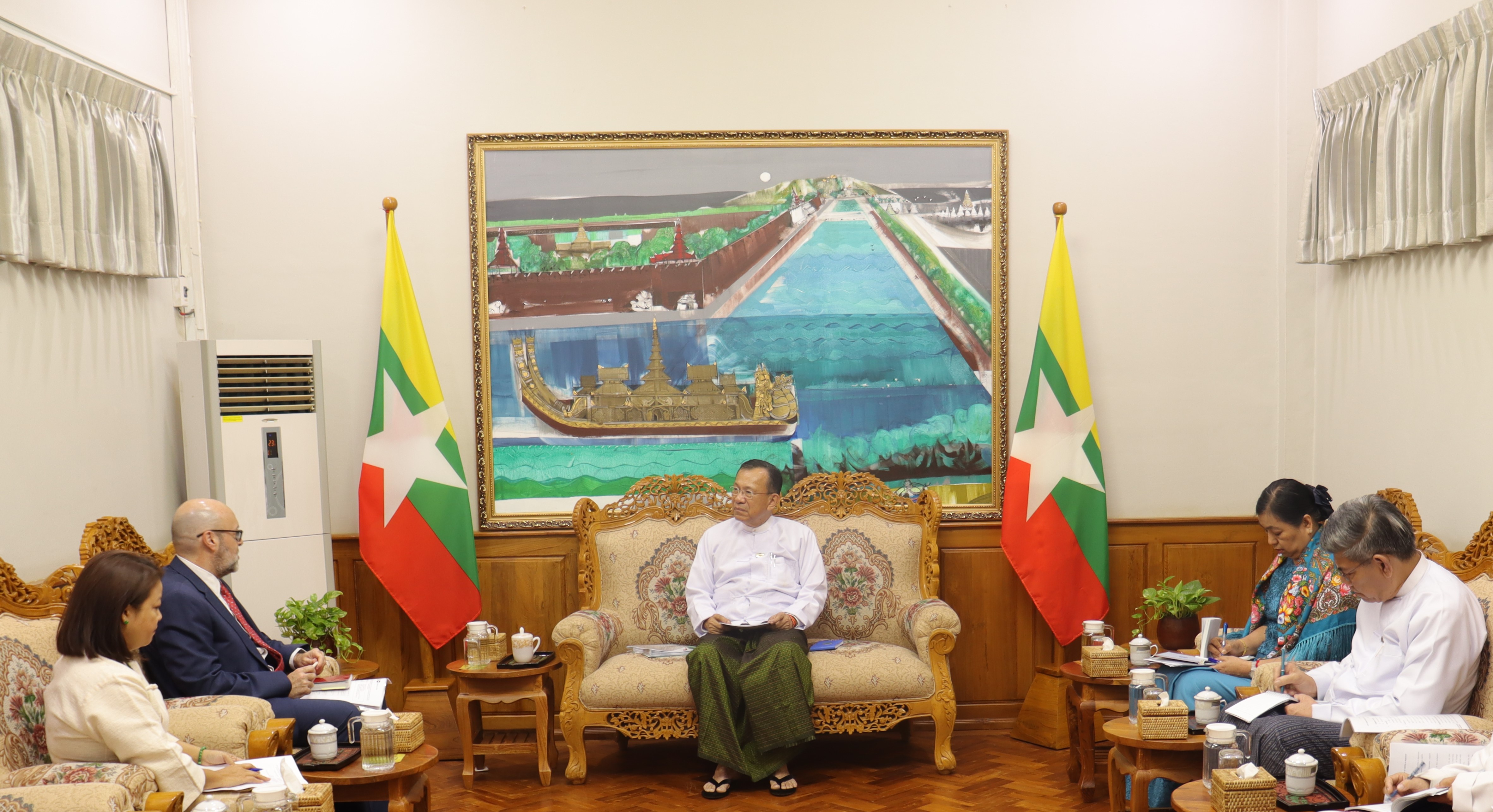 ရင်းနှီးမြှုပ်နှံမှုနှင့် နိုင်ငံခြားစီးပွားဆက်သွယ်ရေးဝန်ကြီးဌာန၊ ပြည်ထောင်စုဝန်ကြီး ဒေါက်တာကံဇော်သည် ကုလသမဂ္ဂလူဦးရေရန်ပုံငွေအဖွဲ့ (UNFPA) ၏ မြန်မာနိုင်ငံဆိုင်ရာ ဌာနေကိုယ်စားလှယ် Mr. Jaime Nadal Roig ကို ယနေ့ မွန်းလွဲပိုင်းတွင် ရင်းနှီးမြှုပ်နှံမှုနှင့် နိုင်ငံခြားစီးပွားဆက်သွယ်ရေးဝန်ကြီးဌာန၊ ရုံးအမှတ် (၁) ၊ နေပြည်တော်၌ လက်ခံတွေ့ဆုံသည်။