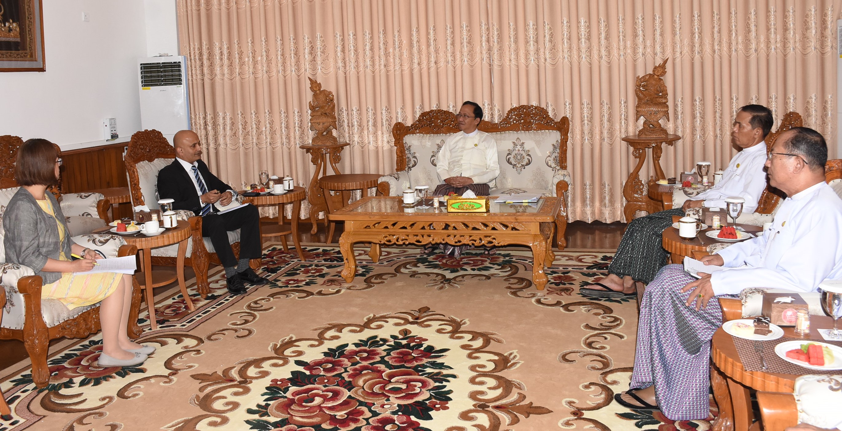 ကျန်းမာရေးဝန်ကြီးဌာန ပြည်ထောင်စုဝန်ကြီး ဒေါက်တာသက်ခိုင်ဝင်း သည် ကုလသမဂ္ဂလူဦးရေရန်ပုံငွေအဖွဲ့(UNFPA)ရုံး မြန်မာနိုင်ငံဆိုင်ရာ ဌာနေကိုယ်စားလှယ် Mr. Ramanathan Balakrishnan ဦးဆောင်သည့် ကိုယ်စားလှယ်အဖွဲ့ကို ယမန်နေ့ မွန်းလွဲပိုင်းက နေပြည်တော်ရှိ ကျန်းမာရေးဝန်ကြီးဌာန၌ လက်ခံတွေ့ဆုံသည်။