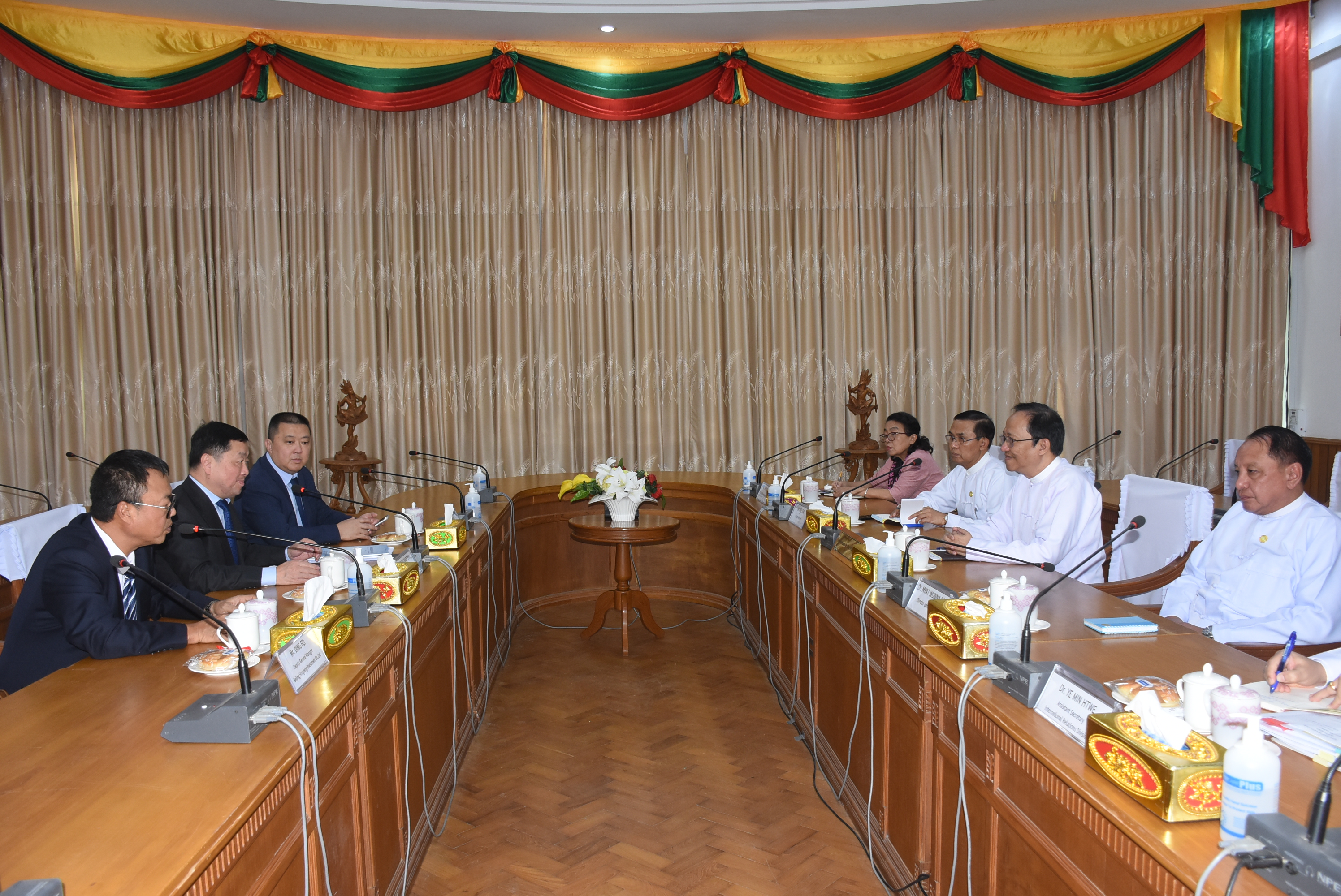 ကျန်းမာရေးဝန်ကြီးဌာန၊ ပြည်ထောင်စုဝန်ကြီး ဒေါက်တာသက်ခိုင်ဝင်းအား ပေကျင်းဟုန်ဖန်း ရင်းနှီးမြှုပ်နှံမှုကုမ္ပဏီလိမိတက်မှ Mr. Zhou Xiaofeng ဦးဆောင်သည့် ကိုယ်စားလှယ်အဖွဲ့သည် ယနေ့ မွန်းလွဲပိုင်းတွင် ကျန်းမာရေးဝန်ကြီးဌာန၊ အစည်းအဝေးခန်းမ၌ လာရောက်တွေ့ဆုံသည်။