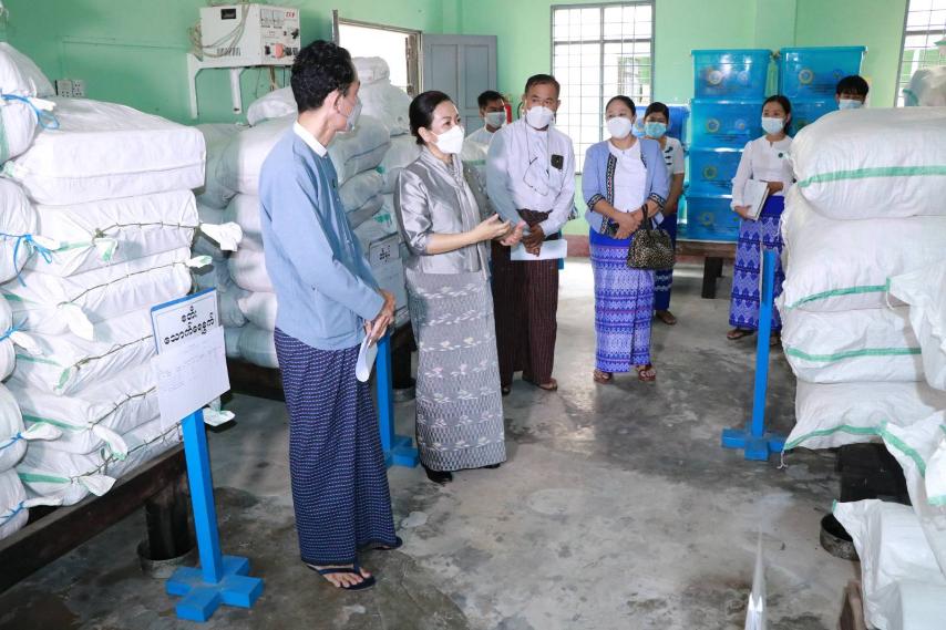လူမှုဝန်ထမ်း၊ ကယ်ဆယ်ရေးနှင့် ပြန်လည်နေရာချထားရေးဝန်ကြီးဌာန၊ ပြည်ထောင်စုဝန်ကြီး ဒေါက်တာသက်သက်ခိုင်သည် ယမန်နေ့ မွန်းလွဲပိုင်းတွင် ပြည်နယ် ဦးစီးမှူးရုံး သိုလှောင်ရုံအား ကြည့်ရှု့စစ်ဆေးရာ ပြည်နယ်ဦးစီးမှူးက ကယ်ဆယ်ရေးပစ္စည်း (၁၇)မျိုး အိမ်ထောင်စု(၁၀၀၀)စာ သိုလှောင်ထားရှိမှုကို ရှင်းလင်းတင်ပြခဲ့ပြီး ပြည်ထောင် စုဝန်ကြီးက သိုလှောင်ရုံထိန်းသိမ်းရေးလက်စွဲအတိုင်း စနစ်တကျ စာရင်းထားရှိဆောင်ရွက်ရန်နှင့် Inventory Management Software ကို လက်တွေ့အသုံးပြုနိုင်ရေး ကြိုးပမ်း ဆောင်ရွက်သွားရန် မှာကြားသည်။