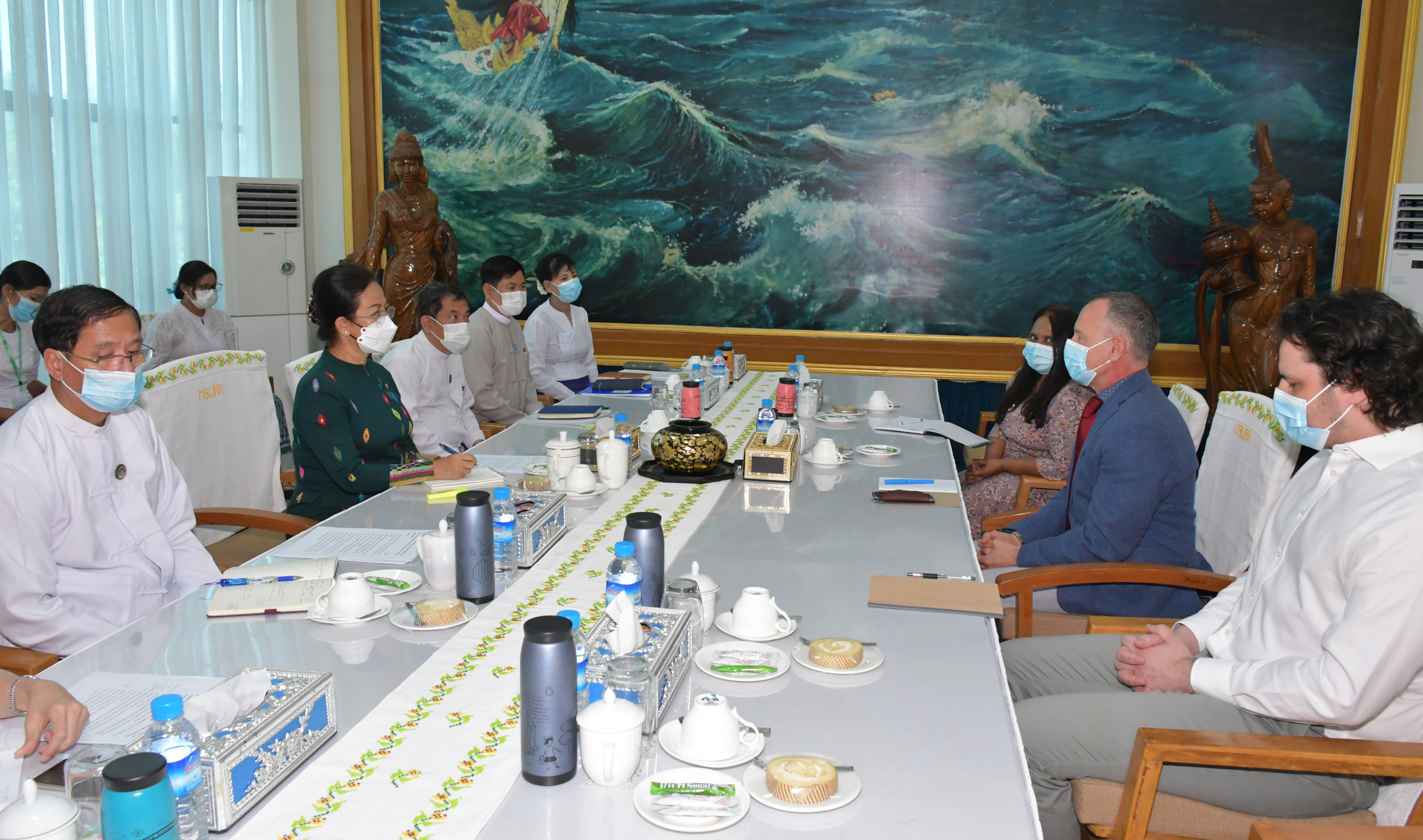 လူမှုဝန်ထမ်း၊ ကယ်ဆယ်ရေးနှင့် ပြန်လည်နေရာချထားရေးဝန်ကြီးဌာန၊ ပြည်ထောင်စုဝန်ကြီး ဒေါက်တာသက်သက်ခိုင်သည် ကုလသမဂ္ဂကလေးများ ရန်ပုံငွေအဖွဲ့ (UNICEF)၏ မြန်မာနိုင်ငံ ဆိုင်ရာဌာနေကိုယ်စားလှယ် Mr. Marcoluigi Corsi ဦးဆောင်သောအဖွဲ့ကို ယနေ့မွန်းလွဲ ၁ နာရီတွင် အဆိုပါဝန်ကြီးဌာန၊ မေခလာခန်းမတွင် တွေ့ဆုံသည်။