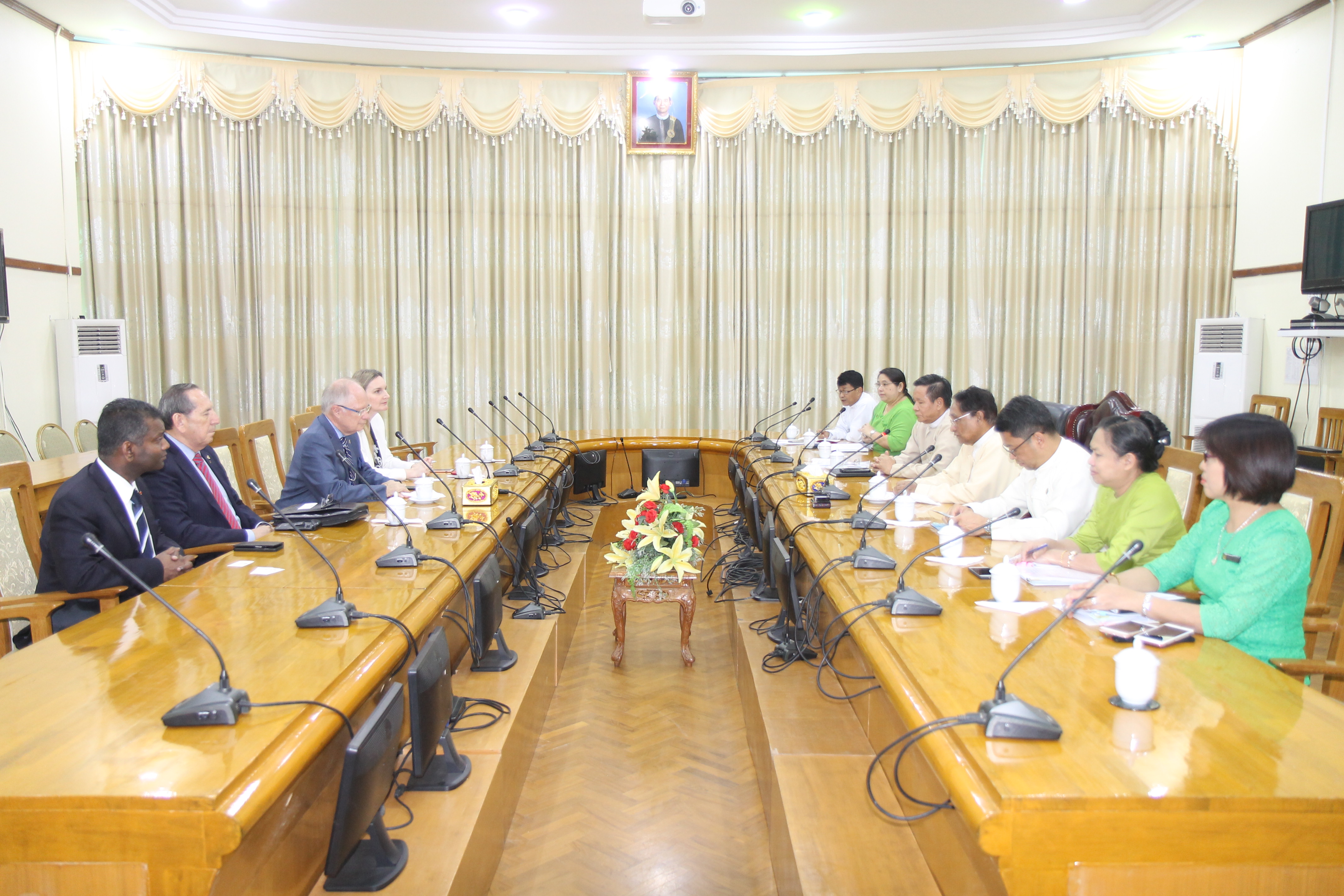 စီးပွားရေးနှင့် ကူးသန်းရောင်းဝယ်ရေးဝန်ကြီးဌာန၊ ပြည်ထောင်စုဝန်ကြီး ဒေါက်တာသန်းမြင့်သည် ကနေဒါနိုင်ငံ၊ Canada Trade Link ကုမ္ပဏီမှ ဥက္ကဋ္ဌ Hon. Bryon Wilfert (တိုရမ်တိုမြို့အခြေစိုက် ဂုဏ်ထူးဆောင်ကောင်စစ်ဝန်ချုပ်) နှင့် အဖွဲ့အား ယနေ့မွန်းလွဲ ၁၂ နာရီခွဲတွင် စီးပွားရေးနှင့် ကူးသန်းရောင်းဝယ်ရေးဝန်ကြီးဌာန၊ အစည်းအဝေးခန်းမ၌ လက်ခံတွေ့ဆုံသည်။