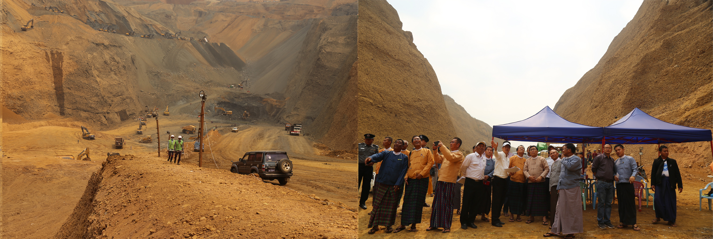 ထို့နောက် ပြည်ထောင်စုဝန်ကြီးနှင့်အဖွဲ့သည် လက်ရှိတူးဖော်ခွင့်ရ လုပ်ကွက်တွင် ဘေးအန္တရာယ်ကင်းရှင်းစွာ တူးဖော်နိုင်ရေးအတွက် လစ်လပ်၊ မက်လင်ချောင်း အကျိုးတူ (၂) လုပ်ကွက် အတွင်းခေါင်းပေါင်းမြေဖယ်ရှားနေခြင်းကို သွားရောက် ကြည့်ရှုခဲ့ကြသည်။