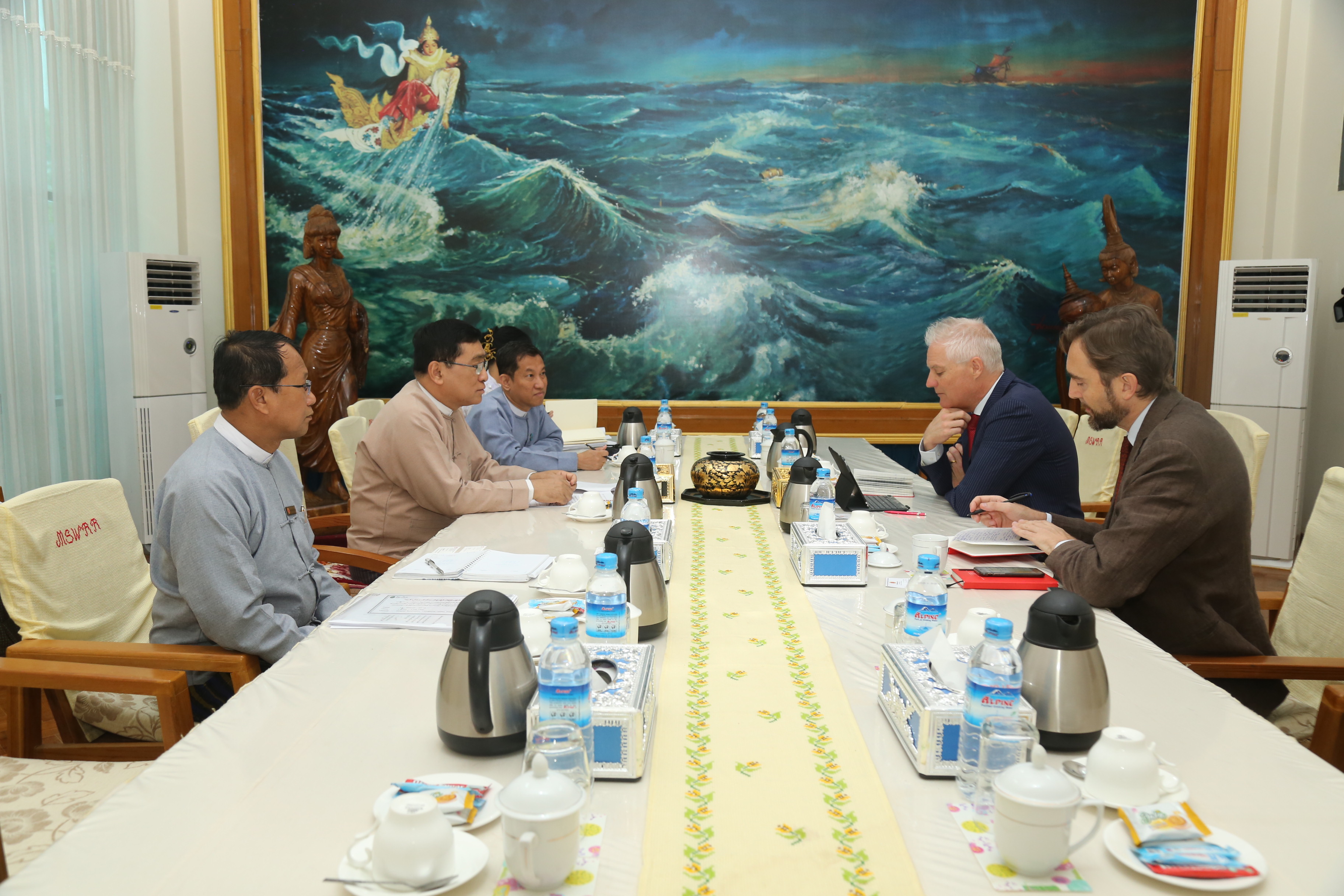 လူမှုဝန်ထမ်း၊ ကယ်ဆယ်ရေးနှင့် ပြန်လည်နေရာချထားရေးဝန်ကြီးဌာန ပြည်ထောင်စုဝန်ကြီး ဒေါက်တာ ဝင်းမြတ်အေးနှင့် မြန်မာနိုင်ငံဆိုင်ရာ ဆွစ်ဇာလန်နိုင်ငံ သံအမတ်ကြီး H.E Mr. Tim Enderlin တို့သည် ယနေ့နံနက်ပိုင်းတွင် နေပြည်တော်ရှိ ဝန်ကြီးရုံး မေခလာခန်းမ၌ တွေ့ဆုံကြသည်။
