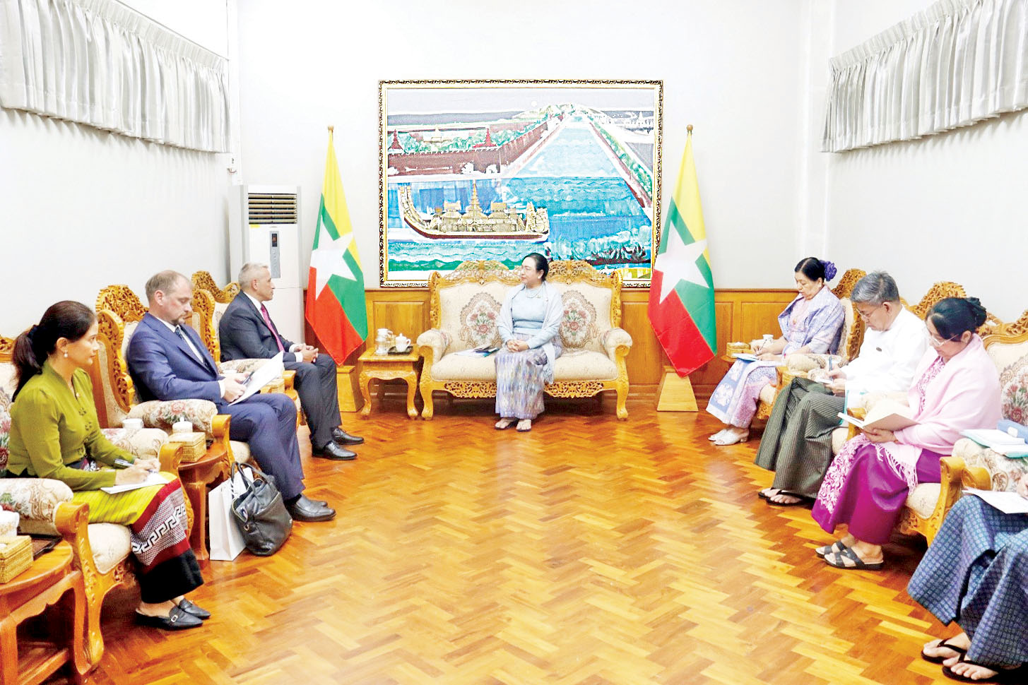 ရင်းနှီးမြှုပ်နှံမှုနှင့်နိုင်ငံခြားစီးပွားဆက်သွယ်ရေးဝန်ကြီးဌာန ပြည်ထောင်စုဝန်ကြီး ဒေါက်တာဝါဝါမောင်သည် ဟနွိုင်းမြို့အခြေစိုက် ဘယ်လာရုစ်သံရုံးမှ သံအမတ်ကြီး H.E. Mr. Uladzimir Baravikou ဦးဆောင်သော ကိုယ်စားလှယ်အဖွဲ့အား ယနေ့မွန်းလွဲပိုင်းတွင် နေပြည်တော်ရှိ ရင်းနှီးမြှုပ်နှံမှုနှင့်နိုင်ငံခြားစီးပွားဆက်သွယ်ရေးဝန်ကြီးဌာန၌ လက်ခံတွေ့ဆုံသည်။