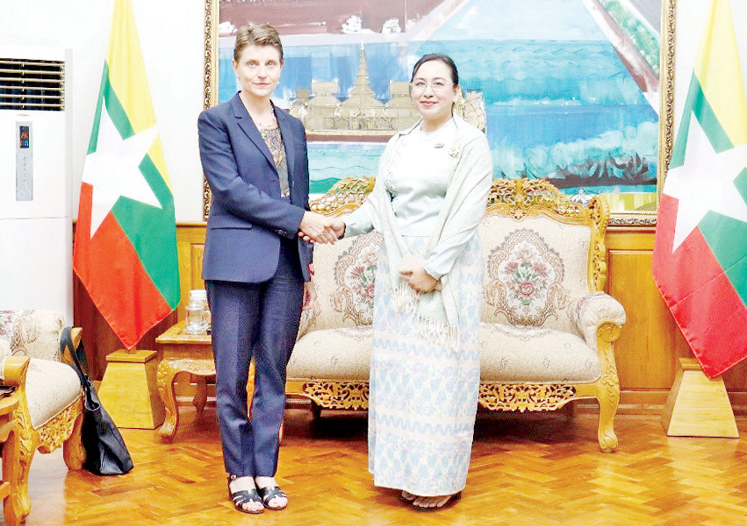 ရင်းနှီးမြှုပ်နှံမှုနှင့်နိုင်ငံခြားစီးပွားဆက်သွယ်ရေးဝန်ကြီးဌာန ပြည်ထောင်စုဝန်ကြီး ဒေါက်တာဝါဝါမောင်သည် မြန်မာနိုင်ငံဆိုင်ရာ ကုလသမဂ္ဂယာယီဌာနေညှိနှိုင်းရေးမှူးနှင့် လူသားချင်းစာနာထောက်ထားမှုဆိုင်ရာ ယာယီညှိနှိုင်းရေးမှူးဖြစ်သူ Ms. Gwyn Lewis ဦးဆောင်သော ကိုယ်စားလှယ်အဖွဲ့အား ယနေ့နံနက်ပိုင်းတွင် အဆိုပါဝန်ကြီးဌာန ရုံးအမှတ် (၁) ၌ လက်ခံတွေ့ဆုံသည်။