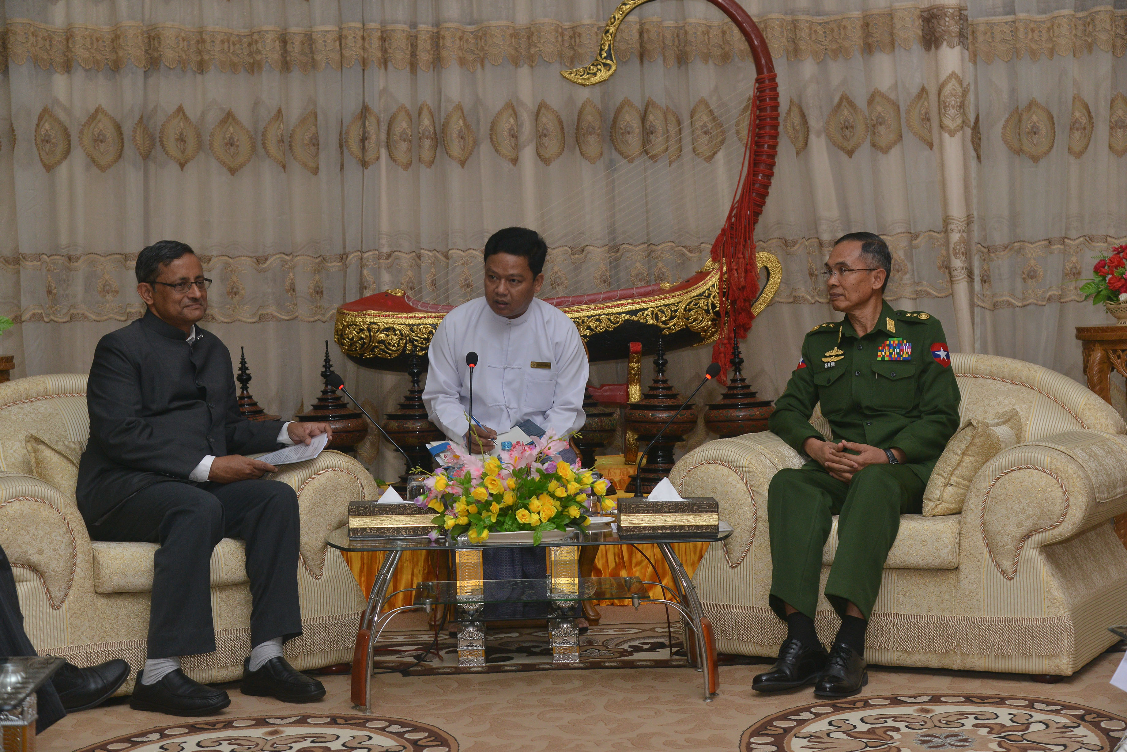ကာကွယ်ရေးဝန်ကြီးဌာန ပြည်ထောင်စုဝန်ကြီး ဒုတိယဗိုလ်ချုပ်ကြီး စိန်ဝင်းသည် အိန္ဒိယနိုင်ငံ ကာကွယ်ရေးအတွင်းဝန် H.E.Mr. Sanjay Mitra နှင့်အဖွဲ့အား ယနေ့ နံနက် ၁၁ နာရီတွင် ကာကွယ်ရေးဝန်ကြီးဌာန၊ ပြည်ထောင်စုဝန်ကြီးရုံး ဧည့်ခန်းမ၌ လက်ခံတွေ့ဆုံသည်။