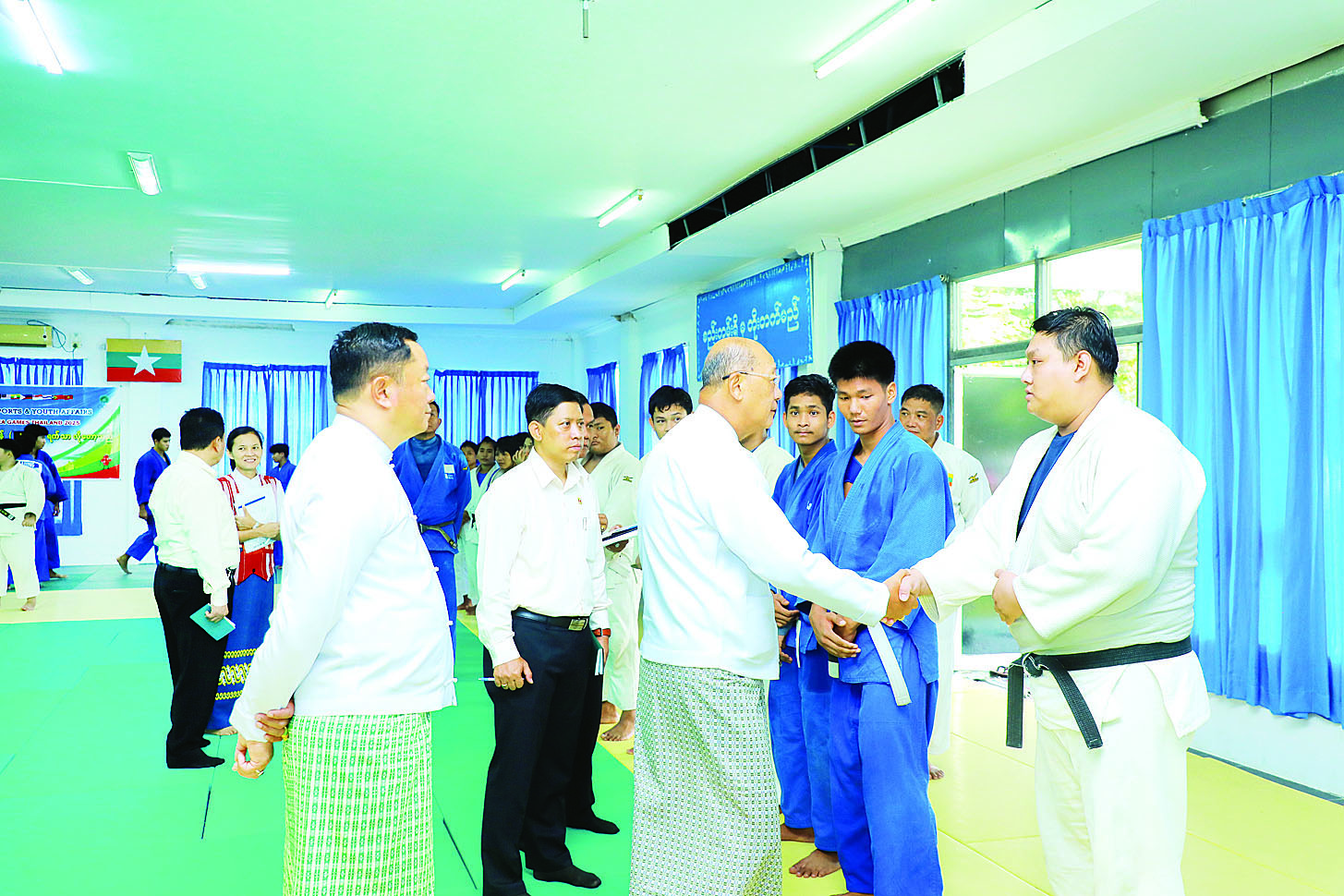 ဦးစွာ ပြည်ထောင်စုဝန်ကြီးနှင့်အဖွဲ့သည် (၃၃) ကြိမ်မြောက် အရှေ့တောင်အာရှအားကစားပြိုင်ပွဲတွင် ဝိတ်တန်းအပြည့်နှင့် အားကစားသမားအင်အားပြည့် ဝင်ရောက်ယှဉ်ပြိုင်နိုင်ရန်အတွက် နေပြည်တော် အားကစားလေ့ကျင့်ရေးစခန်း (Gold Camp) ရှိ ဂျူဒိုလေ့ကျင့်ရေးခန်းမ၌ ဂျူဒိုနှင့် ဂျူဂျစ်ဆု အားကစားသမားများ၏ လေ့ကျင့်နေမှုကိုလည်းကောင်း၊ ပီတန်းအားကစားသမားများ၏ပြိုင်ပွဲ ပုံစံလေ့ကျင့်ယှဉ်ပြိုင်နေမှုကိုလည်းကေင်း လှည့်လည်ကြည့်ရှုပြီး အားကစားသမားများနှင့်တွေ့ဆုံကာ အုပ်ချုပ်သူ၊ နည်းပြများအနေဖြင့် မိမိအားကစားသမားများ၏ အခြေအနေကို လေ့လာသုံးသပ်၍ အားနည်းချက်၊ အားသာချက်များကို ပြန်လည်ပြုပြင် သင်ကြားလေ့ကျင့်ပေးသွားရန် မှာကြားသည်။