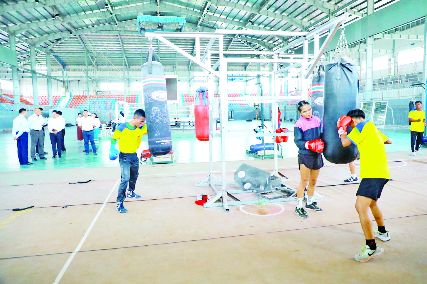 မြန်မာနိုင်ငံ အိုလံပစ်ကော်မတီဥက္ကဋ္ဌ အားကစားနှင့် လူငယ်ရေးရာဝန်ကြီးဌာနနှင့် ဟိုတယ်နှင့် ခရီးသွားလာရေးဝန်ကြီးဌာန ပြည်ထောင်စုဝန်ကြီး Jeng Phang နော်တောင်သည် အားကစားနှင့် လူငယ်ရေးရာဝန်ကြီးဌာန ဒုတိယဝန်ကြီး ဦးဇင်မင်းထက်၊ တာဝန်ရှိသူများနှင့်အတူ ယနေ့ နံနက်ပိုင်းတွင် (၃၃) ကြိမ်မြောက် အရှေ့တောင်အာရှ အားကစားပြိုင်ပွဲသို့ ဝင်ရောက်ယှဉ်ပြိုင်ရန် လက်ဝှေ့ နှင့် ပိုက်ကျော်ခြင်းအားကစားအဖွဲ့များ စခန်းဝင် လေ့ကျင့်နေမှုကို ကြည့်ရှုအားပေးသည်။