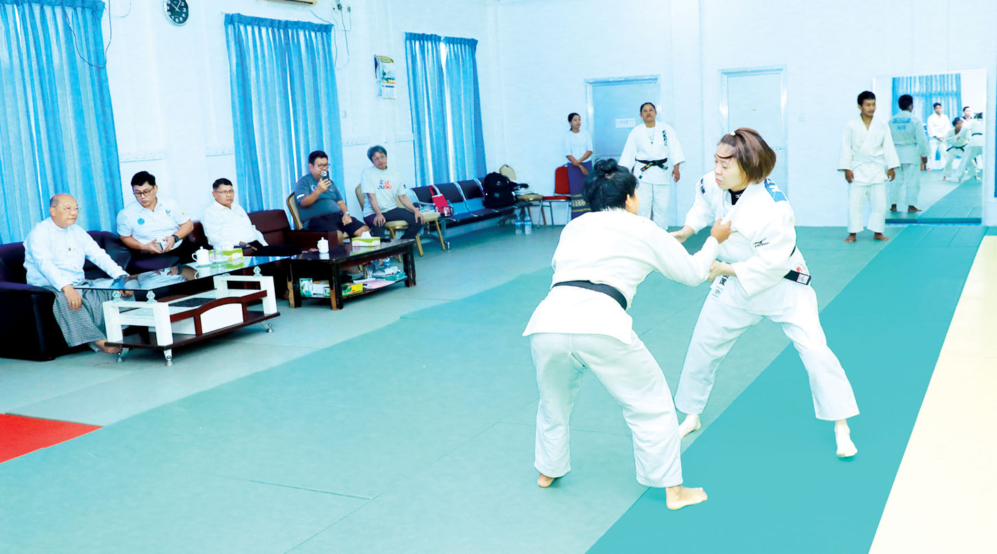 ဦးစွာ ပြည်ထောင်စုဝန်ကြီးသည် အားကစားလေ့ကျင့်ရေးစခန်း (Gold Camp)ရှိ ဂျူဒိုလေ့ကျင့် ရေးခန်းမတွင် ဂျပန်နည်းပြက ပဏာမလက်ရွေးစင် အားကစားသမားများနှင့် လူငယ်အားကစားသမားများအား နည်းစနစ်ပိုင်းဆိုင်ရာများကို Sparring ကစားခြင်းဖြင့် တစ်ဦးချင်း သင်ကြားလေ့ကျင့်ပေးနေမှုများကို ကြည့်ရှုအားပေးပြီး (၃၃)ကြိမ်မြောက် အရှေ့တောင်အာရှ အားကစားပြိုင်ပွဲသို့ ဝင်ရောက်ယှဉ်ပြိုင်မည့် အားကစားသမားများအတွက် ပြိုင်ပွဲဝင်ဝတ်စုံ ဂျူဒိုကီနှင့် ခါးစည်း ခါးပတ်ဝယ်ယူထားရှိမှုအခြေအနေများကို ကြည့်ရှုစစ်ဆေးကာ ပြိုင်ပွဲဝင်ဝတ်စုံနှင့် အသားကျနေစေရန်အတွက် တာဝန်ရှိသူများအား လိုအပ်သည်များ ကြိုတင်ပြင်ဆင်ဆောင်ရွက်သွားရန် မှာကြားသည်။