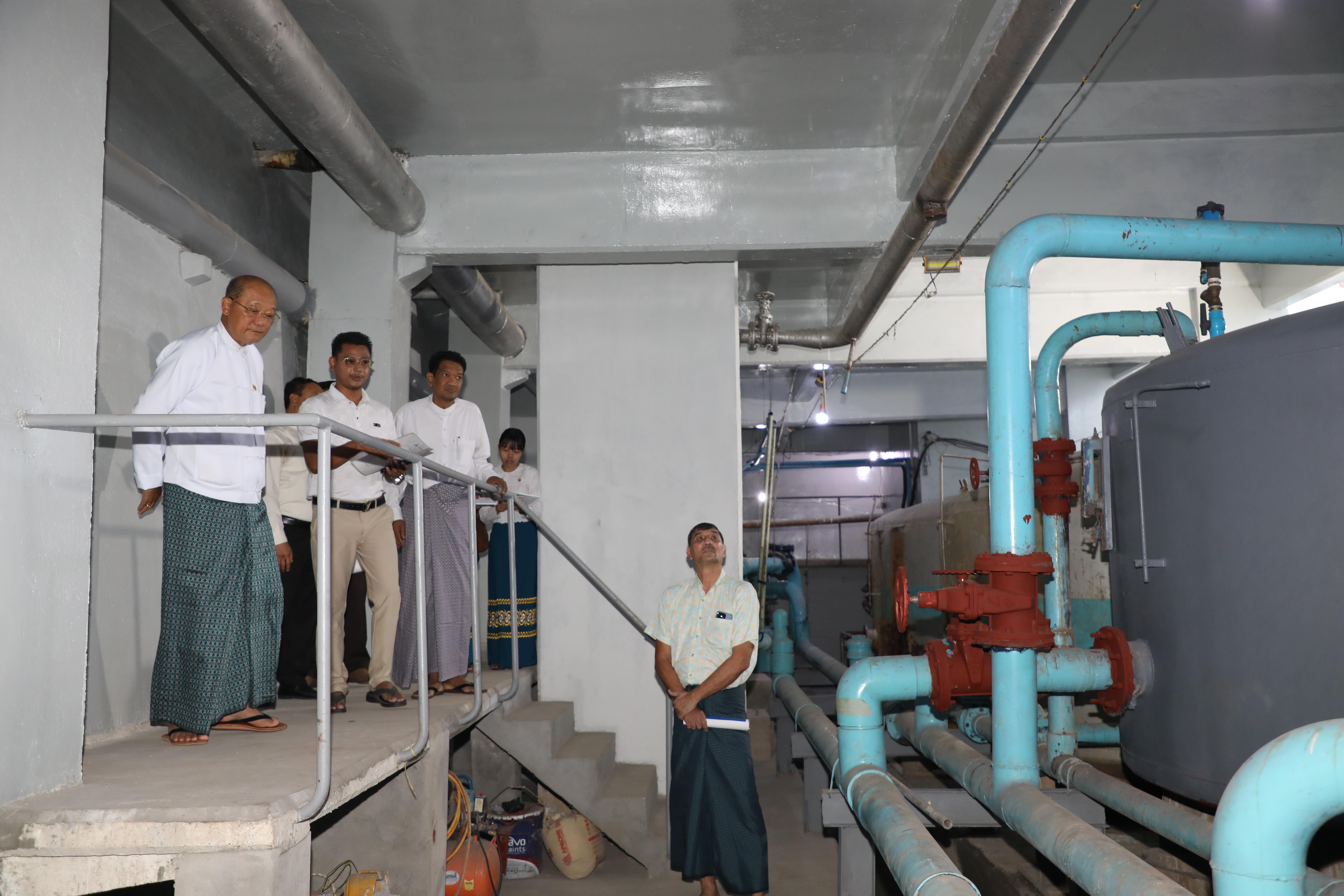 ဉီးစွာ ပြည်ထောင်စုဝန်ကြီးသည် ၂၀၂၄-၂၀၂၅ ခုနှစ် ၊ ဘဏ္ဍာရေးနှစ် အားကစားနှင့် ကာယပညာ ဦးစီးဌာန ရန်ပုံငွေကျပ်(၂၄၁)သန်းဖြင့် ဆောင်ရွက်နေသော အမျိုးသားရေကူးကန် ရေသန့်စင် စက်ခန်းနံရံ ပြုပြင်နေမှု ၊ ရေသန့်စင်စနစ် Filter ပြုပြင်နေမှုများကို ကြည့်ရှုစစ်ဆေး ပြီးရေသန့်စင်နေအောင် ဆောင်ရွက်ရန်၊ နွေရာသီရေကူးသင်တန်းများ ဆက်လက်ဖွင့်လှစ်ရန် ရေကန်သပ်ရပ် သန့်ရှင်းစေရေး ဆောင်ရွက် ရန်နှင့်လိုအပ်သည်များ ကိုမှာကြားသည်။