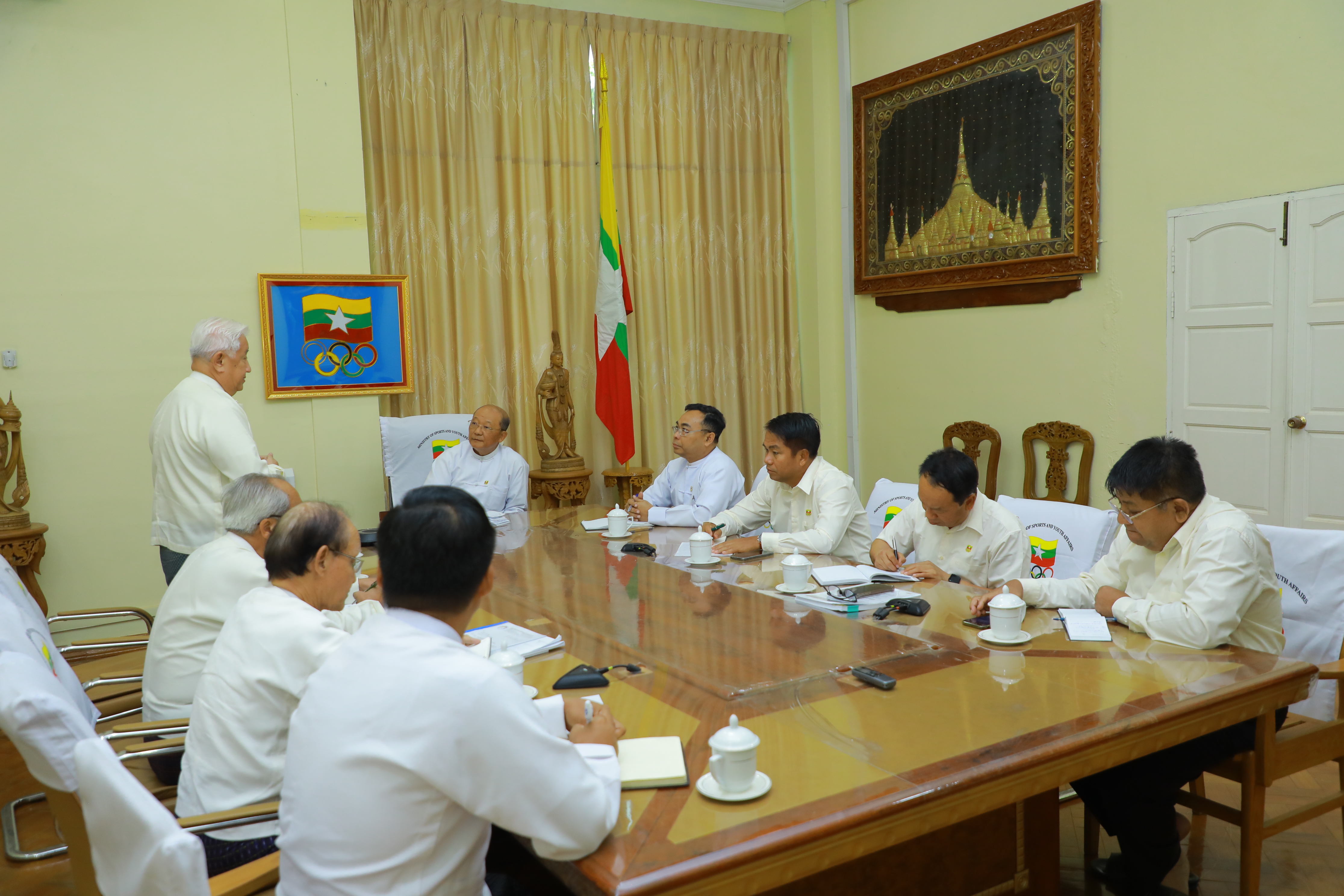 အားကစားနှင့် လူငယ်ရေးရာဝန်ကြီးဌာန ပြည်ထောင်စုဝန်ကြီး Jeng Phang နော်တောင်သည် မြန်မာနိုင်ငံမြင်းစီးအားကစားအဖွဲ့ချုပ်ဥက္ကဋ္ဌ ဦးပြုံးမောင်မောင်နှင့်အဖွဲ့အား ယနေ့မွန်းလွဲပိုင်းတွင် နေပြည်တော် ရုံးအမှတ် (၃၁) ရှိ ဧည့်ခန်းမ၌ လက်ခံတွေ့ဆုံသည်။