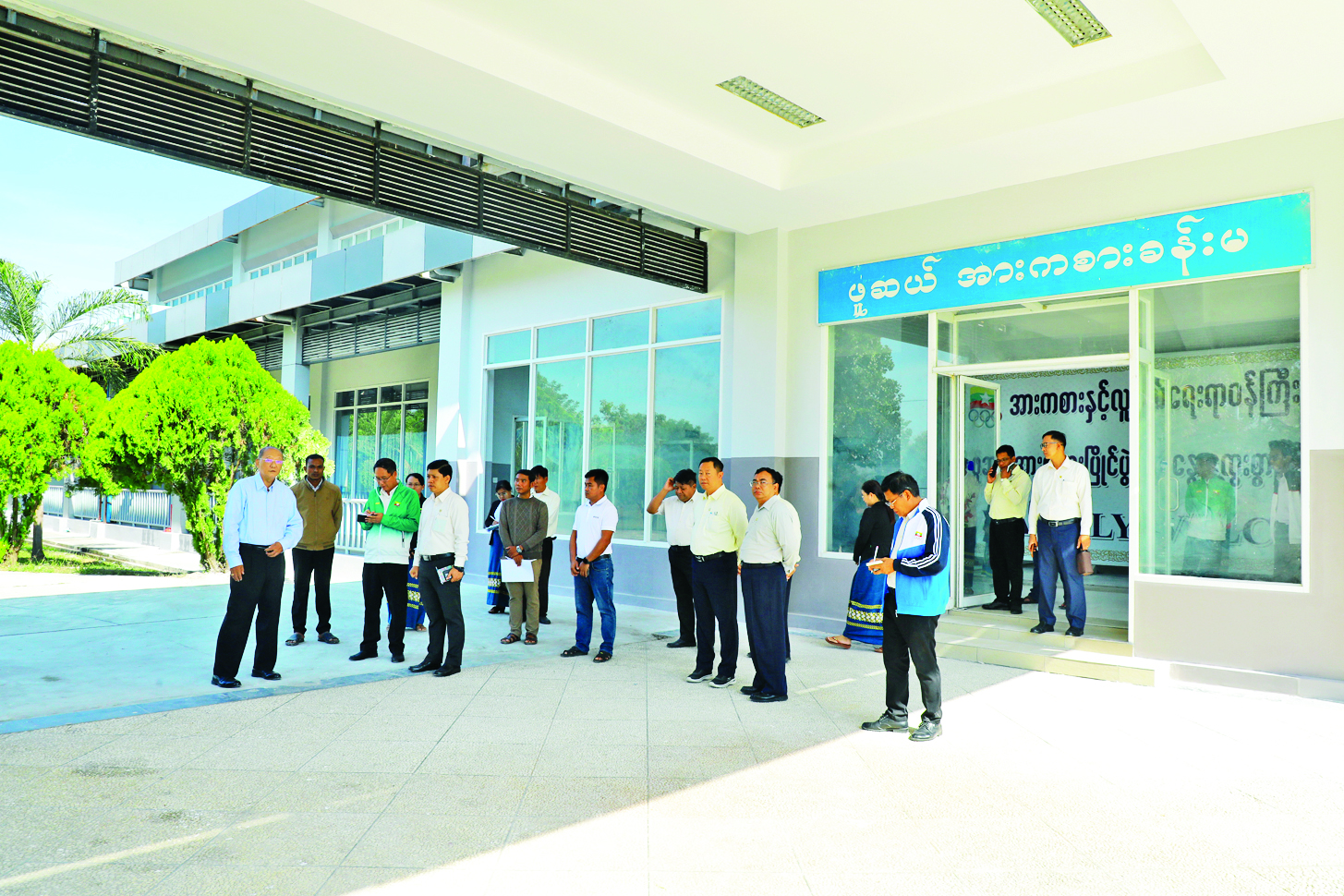 ဦးစွာ ပြည်ထောင်စုဝန်ကြီးနှင့် အဖွဲ့သည် အားကစားရုံ (B) ရှိ Aircon Chilar စက်ခန်းများ၊ Aircon ပိုက်လိုင်းများ၊ Aircon Chilar စက်ခန်းများတွင် စက်ပစ္စည်းများ စနစ်တကျထိန်းသိမ်းထားရှိမှု၊ အသံစက်ပိုင်း (Sound System) ကောင်းမွန်ရန် အုတ်နံရံပတ်လည်အတွင်း၊ အပြင်ပြုပြင်ပြီးစီးမှုအခြေအနေနှင့် ပွဲကြည့်စင်များ၊ ရေလိုင်း၊ မီးလိုင်းသွယ်တန်းထားရှိမှုများကို ကြည့်ရှုစစ်ဆေးပြီး အားကစားရုံများတွင် ပြုပြင်ထိန်းသိမ်းမှုမှတ်တမ်းစာအုပ် (Log Book) စနစ်တကျထိန်းသိမ်းထားရှိရေးနှင့် လိုအပ်သည်များကို မှာကြားသည်။