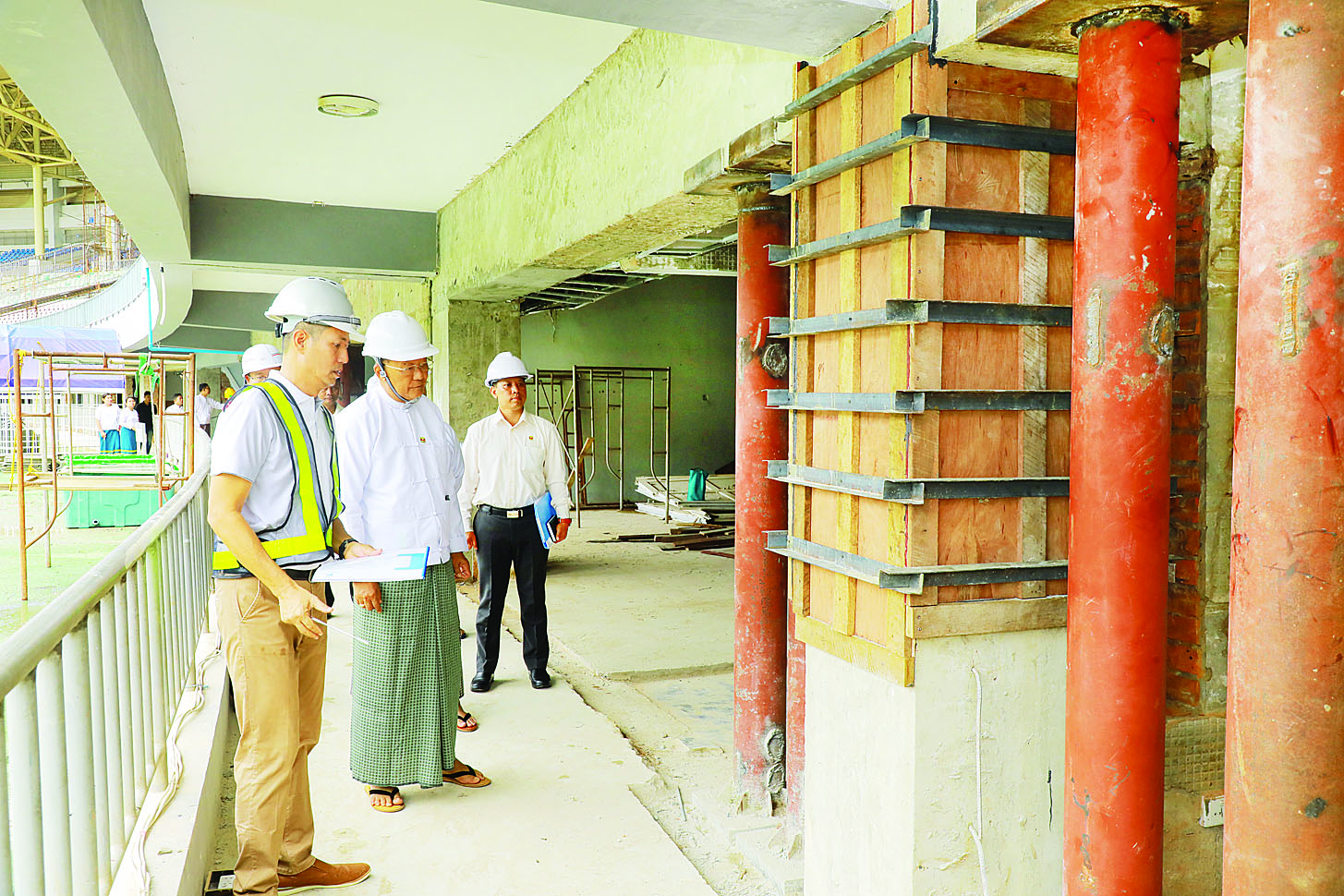 ဦးစွာ ပြည်ထောင်စုဝန်ကြီးနှင့် အဖွဲ့သည် Max Myanmar Co.,Ltd မှ တာဝန်ယူ ဆောင်ရွက်လျက် ရှိသည့် နေပြည်တော်ဝဏ္ဏသိဒ္ဓိအားကစားကွင်းအတွင်း ပြုပြင်ဆောင်ရွက်လျက်ရှိသည့် လုပ်ငန်းများ ကိုလိုက်လံကြည့်ရှုစစ်ဆေးပြီး လိုအပ်သည်များ မှာကြားသည်။