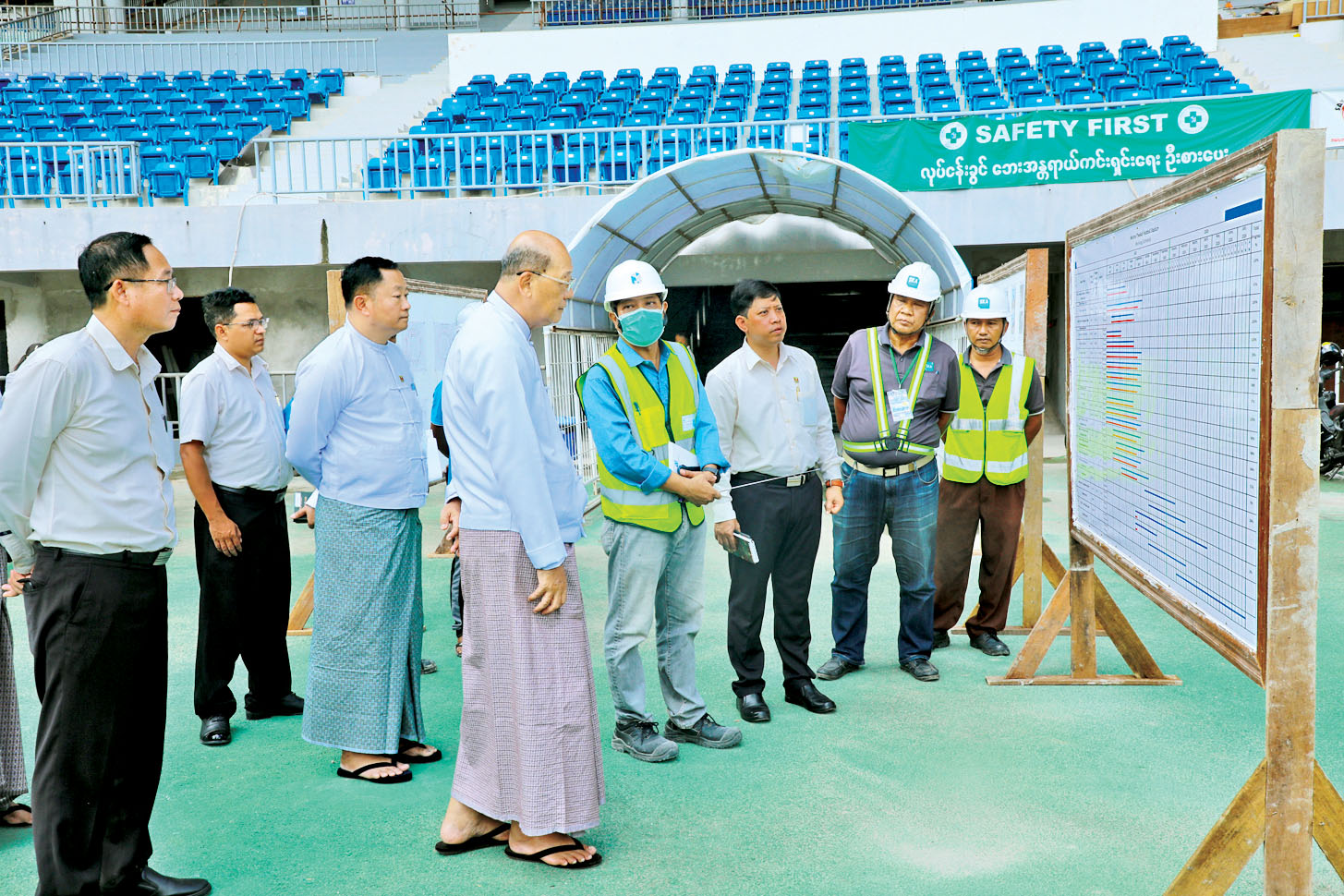 ထို့နောက် နေပြည်တော် ဝဏ္ဏသိဒ္ဓိအားကစားကွင်းအတွင်း ဝဏ္ဏသိဒ္ဓိဘောလုံးကွင်း၏ ပြုပြင်ဆောင်ရွက်ပြီးစီးမှု အခြေအနေများကို လှည့်လည်ကြည့်ရှုပြီး လုပ်ငန်းခွင်အန္တရာယ်ကင်းရှင်းရေး ဦးစားပေးဆောင်ရွက်ရန်၊ အဆောက်အအုံများ ရေရှည်တည်တံ့စေရန်၊ သဘာဝဘေးအန္တရာယ်ဒဏ်နှင့် ရာသီဥတုဒဏ်ခံနိုင်စေရန်အတွက် စံချိန်စံညွှန်းများနှင့်အညီ သတ်မှတ်ကာလအတွင်း အချိန်မီပြီးစီးစေရေး ကျွမ်းကျင်သူများကိုယ်တိုင် စိစစ်ကြပ်မတ်စစ်ဆေးဆောင်ရွက်သွားရန် မှာကြားခဲ့ကြောင်း သိရသည်။