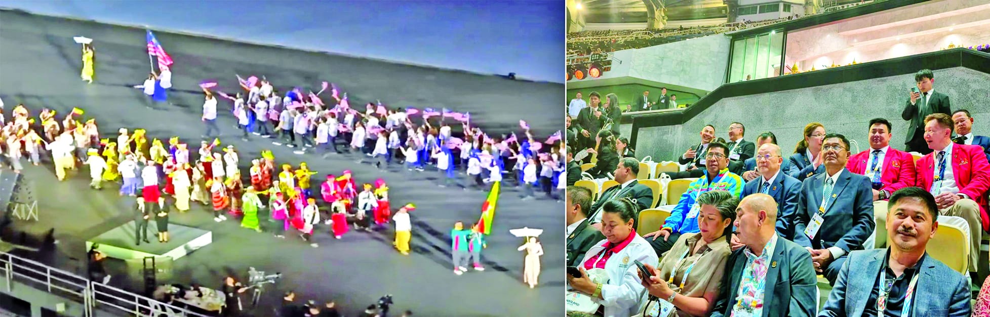 ထိုင်းနိုင်ငံက အိမ်ရှင်အဖြစ်လက်ခံကျင်းပသည့် (၃၃)ကြိမ်မြောက် အရှေ့တောင်အာရှ အားကစားပြိုင်ပွဲ ဖွင့်ပွဲအခမ်းအနားကို ယမန်နေ့ ညနေပိုင်းက ထိုင်းနိုင်ငံဗန်ကောက်မြို့ရှိ Rajamangala National Stadium ၌ ကျင်းပရာ မြန်မာနိုင်ငံ အိုလံပစ်ကော်မတီဥက္ကဋ္ဌ အားကစားနှင့် လူငယ်ရေးရာဝန်ကြီးဌာနနှင့် ဟိုတယ်နှင့် ခရီးသွားလာရေးဝန်ကြီးဌာန ပြည်ထောင်စုဝန်ကြီး Jeng Phang နော်တောင်၊ ပြန်ကြားရေးဝန်ကြီးဌာန ဒုတိယဝန်ကြီး ဦးရဲတင့်၊ ရန်ကုန်တိုင်းဒေသကြီး လူမှုရေးရာဝန်ကြီး ဦးဌေးအောင်၊ မြန်မာအားကစားအဖွဲ့ ခေါင်းဆောင်နှင့် တာဝန်ရှိသူများ၊ မြန်မာအားကစားအဖွဲ့မှ အုပ်ချုပ်သူ၊ နည်းပြများနှင့် အားကစားသမားများ၊ ပြိုင်ပွဲဝင်နိုင်ငံများမှတာဝန်ရှိသူများ၊ ပြိုင်ပွဲဝင်အသင်းများမှ အုပ်ချုပ်သူ၊ နည်းပြများနှင့် အားကစားသမားများ တက်ရောက်ကြသည်။