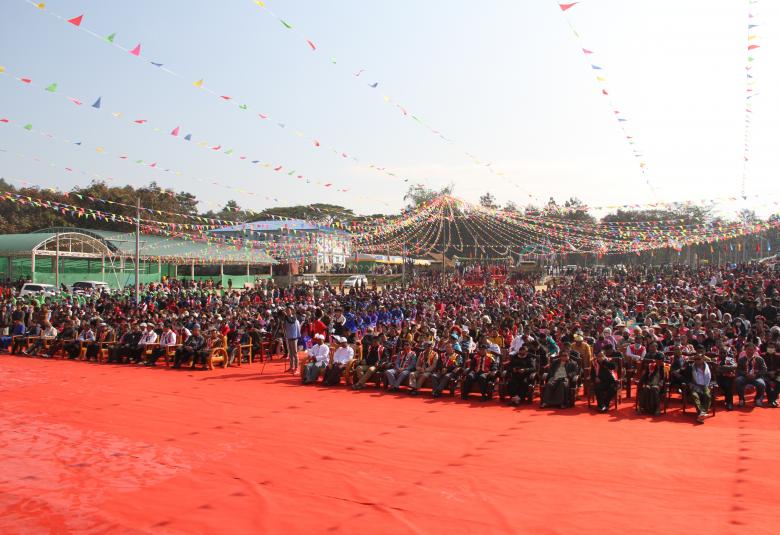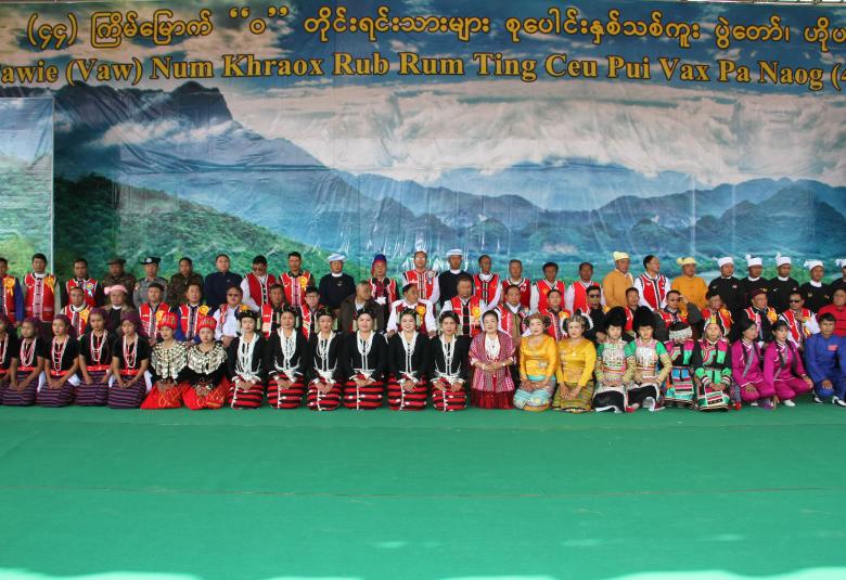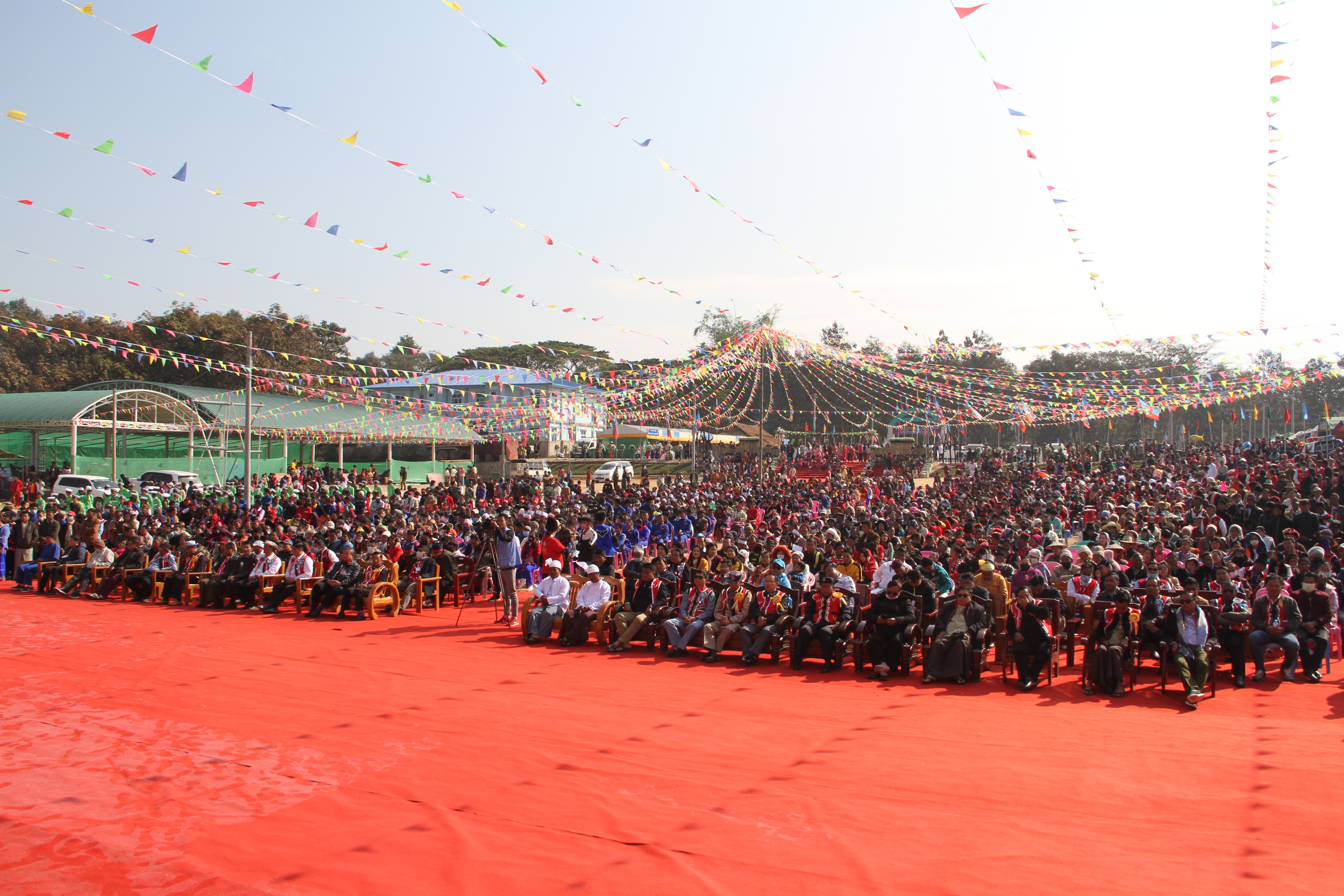 အခမ်းအနား၌ ပြည်ထောင်စုဝန်ကြီး နိုင်သက်လွင်က အမှာစကားပြောကြားရာတွင် တိုင်းရင်းသားများ၏ နှစ်သစ်ကူးပွဲတော်၊ အမျိုးသားနေ့၊ ကောက်သစ်စားပွဲ၊ နေ့ထူးနေ့မြတ်စသော အခမ်းအနားများကို တစ်နှစ်ထက်တစ်နှစ် ပိုမိုစည်ကားသိုက်မြိုက်စွာ ကျင်းပကြသည်ကို တွေ့မြင်ရပြီး နိုင်ငံတော်အစိုးရအနေဖြင့် တိုင်းရင်းသားများ၏ မွေးရာပါအခွင့်အရေးများ ဆောင်ရွက်ခွင့်ပေးသည့်အပြင် နိုင်ငံတော်အကြီးအကဲများ ကိုယ်တိုင်တက်ရောက်ခြင်း၊ သဝဏ်လွှာပေးပို့ခြင်း၊ ဘဏ္ဍာရန်ပုံငွေ တစ်နှစ်ထက်တစ်နှစ် ပိုမိုထောက်ပံ့ပေးခြင်းတို့ဖြင့် အားပေးမှုများကို တွေ့မြင်ကြမည်ဖြစ်ပါကြောင်း၊ အခမ်းအနားကျင်းပနိုင်ရေးအတွက် ဒေသတွင်း တရားဉပဒေစိုးမိုးပြီး အေးချမ်းသာယာမှုရှိမှသာ ဆောင်ရွက်နိုင်မည်ဖြစ်ပြီး နယ်မြေအေးချမ်းမှုမရှိပါက ဒေသခံများ၏ ပူးပေါင်းပါဝင်မှု နိုင်ငံတော်အစိုးရ၏ ကူညီထောက်ပံ့မှုကို ရရှိသော်ငြားလည်း အကောင်အထည်ဖော်ရန် ခက်ခဲမည်ဖြစ်ပါကြောင်း၊ မငြိမ်းချမ်းခြင်း၏ ဆိုးကျိုးနှင့် ငြိမ်းချမ်းခြင်း၏ ကောင်းကျိုးရလဒ်ကို ဒေသခံများကိုယ်တိုင် ခံစားရသူများဖြစ်ကြ၍ နားလည်သိရှိပြီးဖြစ်ပါကြောင်း၊ မိမိတို့၏ ဒေသဖွံ့ဖြိုးတိုးတက်ရေးအတွက် နိုင်ငံတော်က အကောင်အထည်ဖော် ဆောင်ရွက်နေသော ပြည်တွင်းငြိမ်းချမ်းရေးဖြစ်စဉ်တွင် အားလုံးပူးပေါင်း ပါဝင်ကြရန်လိုပါကြောင်း။