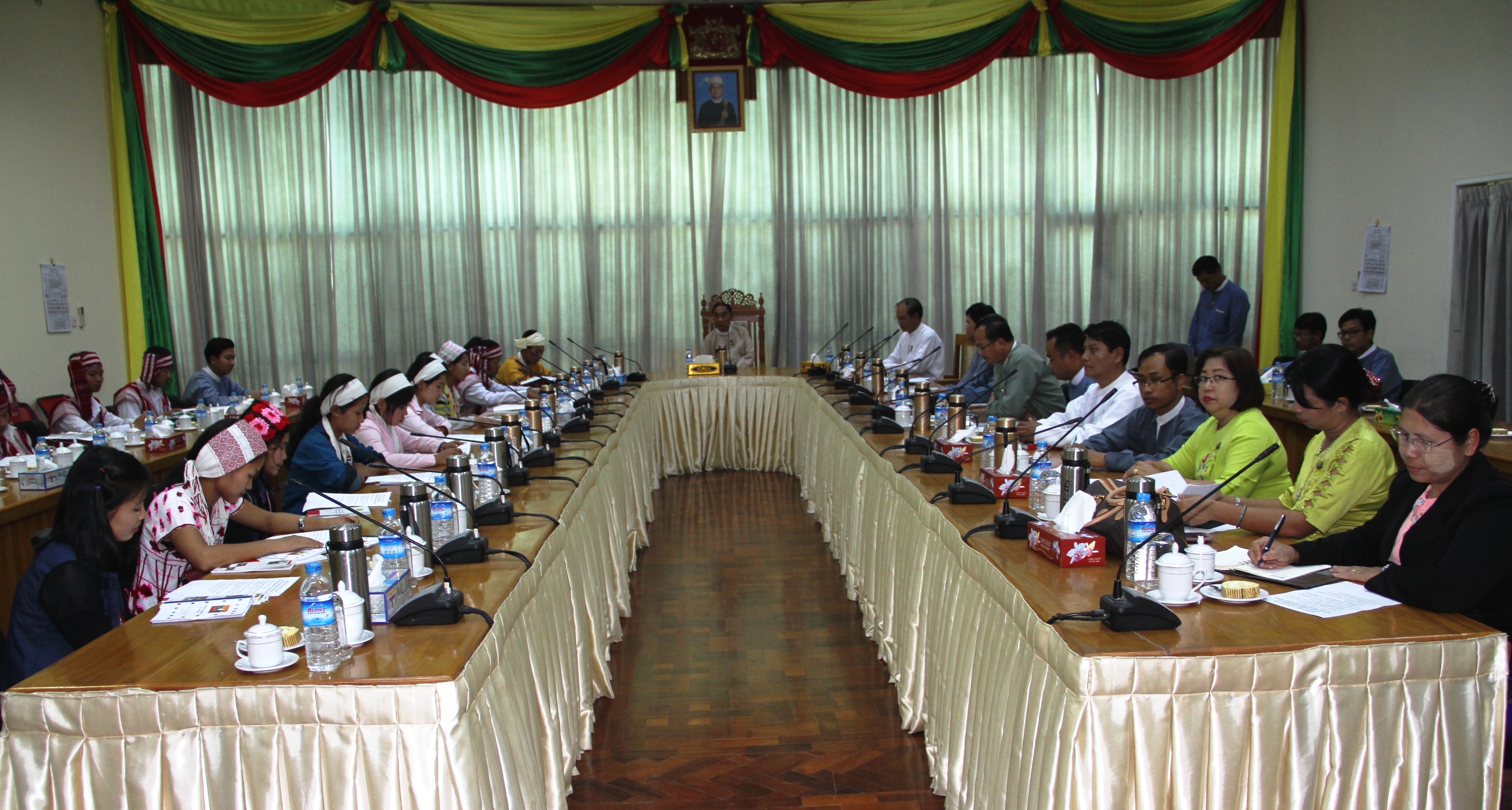 တွေ့ဆုံစဉ် ပြည်ထောင်စုဝန်ကြီးက မိမိတို့ တိုင်းရင်းသားလူမျိုးများရေးရာ ဝန်ကြီးဌာနအနေဖြင့် တိုင်းဒေသကြီးနှင့် ပြည်နယ်များတွင် ဦးစီးဌာနညွှန်ကြားရေးမှူးရုံးများ ဖွင့်လှစ်နိုင်ပြီဖြစ်ရာ တိုင်းရင်းသားများအနေဖြင့် အဆိုပါရုံးများမှတစ်ဆင့် မိမိတို့ဒေသ၏ ပညာရေး၊ ကျန်းမာရေး၊ စီးပွားရေး စသည့်ကဏ္ဍ အသီးသီးရှိ လိုအပ်ချက်များအား တင်ပြဆောင်ရွက်နိုင်ပြီဖြစ်ကြောင်း၊ ဒီမိုကရေစီ ဖက်ဒရယ်ပြည်ထောင်စုစနစ် မရရှိသေးမီကာလတွင် ဒီမိုကရေစီဖက်ဒရယ်စနစ်၏ အခြေခံဖြစ်သည့် တန်းတူညီမျှရေး၊ ကိုယ်ပိုင်ပြဋ္ဌာန်းခွင့်ရရှိရေး၊ ကိုယ့်ကံကြမ္မာကိုယ် ဖန်တီးခွင့်ရရှိရေး စသည့်အချက်အလက်များကို အပြည့်အဝရရှိအောင် ဆောင်ရွက်ပေးနိုင်ခြင်း မရှိသေးသော်လည်း အထိုက်အလျောက် ဖြည့်ဆည်းပေးနိုင်ရေးအတွက် မိမိတို့ဝန်ကြီးဌာနအနေဖြင့် ကူညီဆောင်ရွက်ပေးလျက်ရှိပါကြောင်း၊ တိုင်းရင်းသား လူငယ်များအနေဖြင့် ပြည်ထောင်စုအဆင့်တွင်သာမက ခေတ်မီတိုးတက်နေသော ကမ္ဘာ့ရေးစီးကြောင်းတွင်ပါ ဝင်ဆံ့နိုင်ရန်အတွက် မှန်ကန်မြင့်မြတ်သော အသိပညာ ဗဟုသုတများ ရှာဖွေရန်လိုအပ်ကြောင်း၊ အဆိုပါမှန်ကန်မြင့်မြတ်သော အသိပညာများကို မိမိတို့ ဒေသဖွံ့ဖြိုးတိုးတက်ရေးတွင်သာမက ပြည်ထောင်စုကြီး ဖွံ့ဖြိုးတိုးတက်ရေးတွင်ပါ အသုံးချ ဆောင်ရွက်သွားကြရမည်ဖြစ်ကြောင်း ပြောကြားသည်။